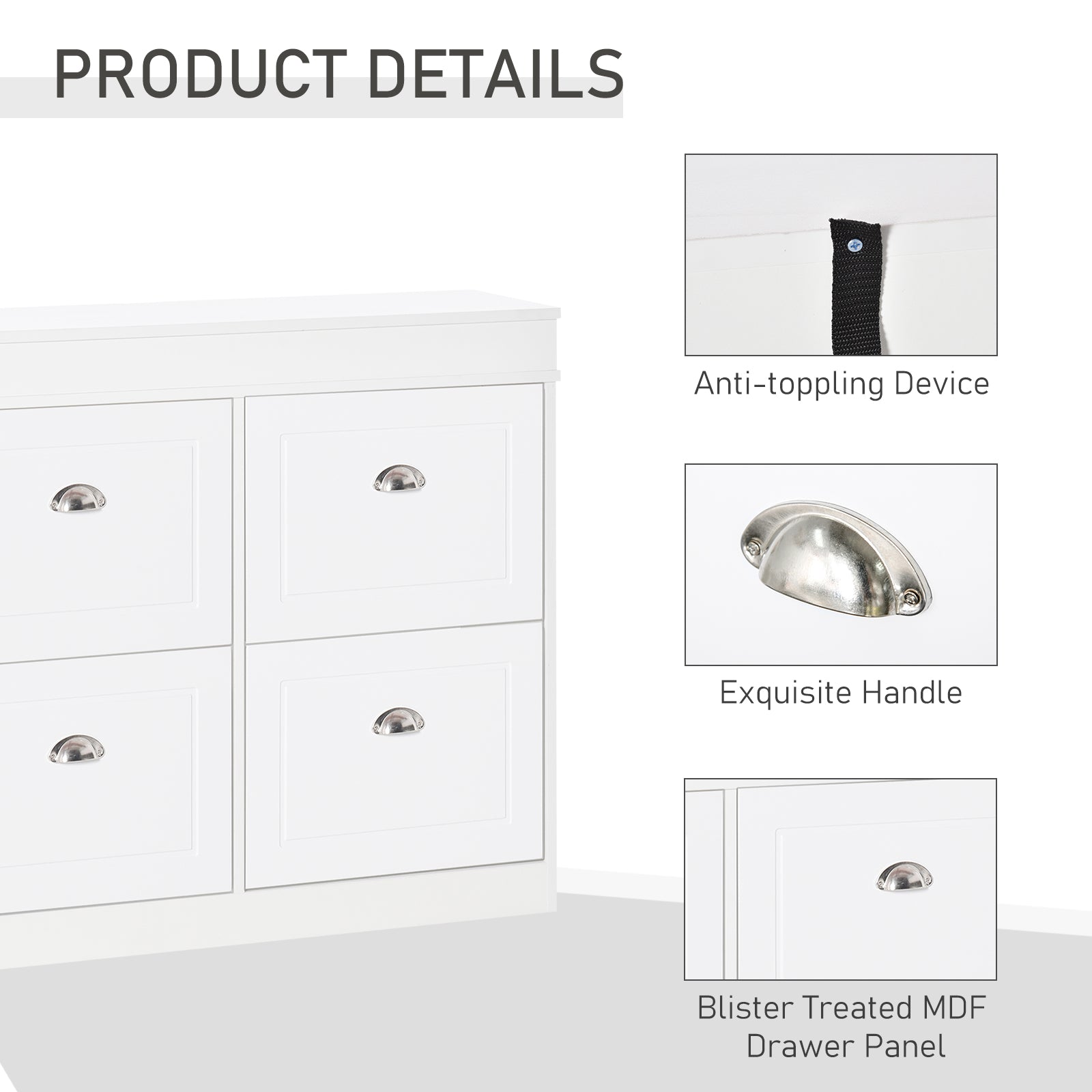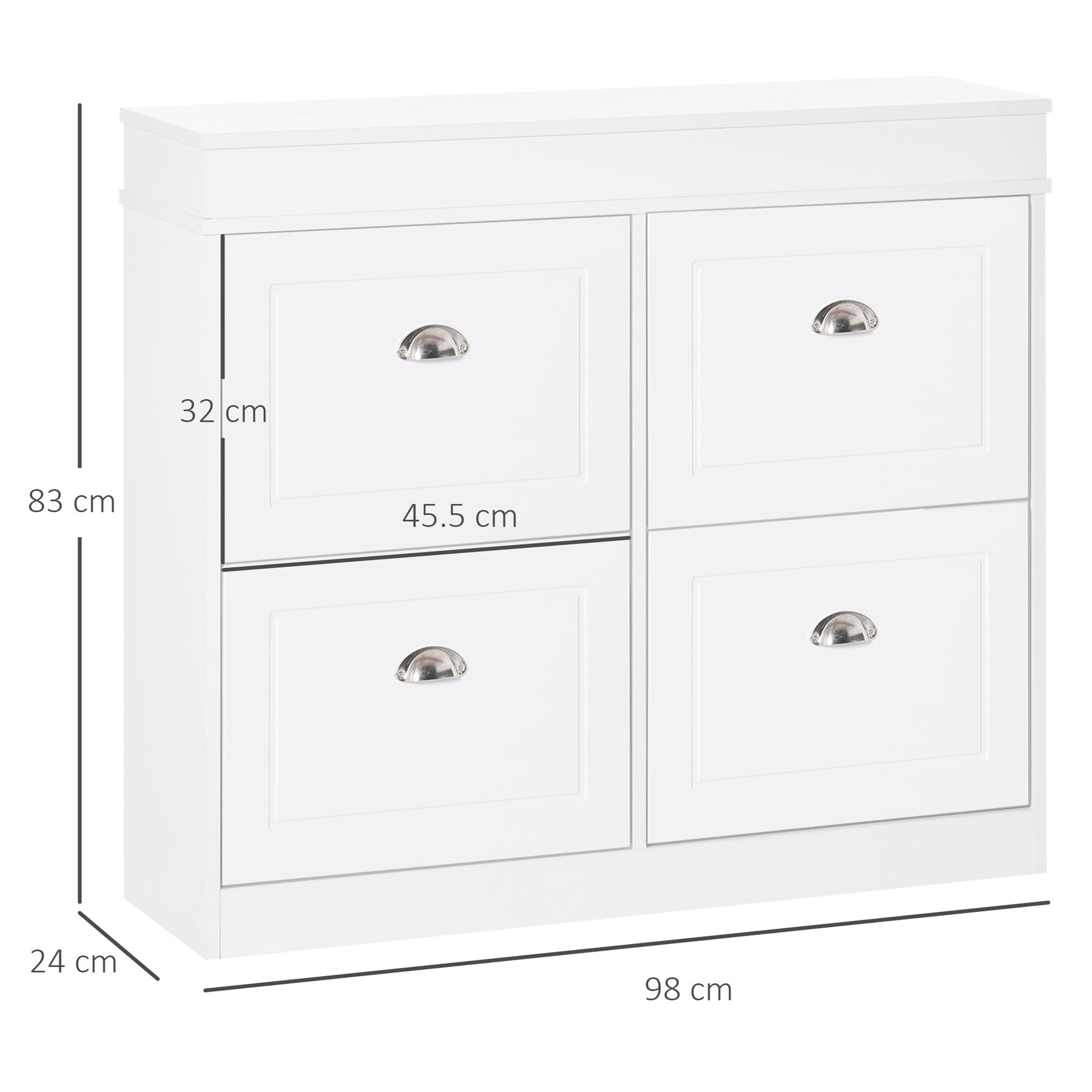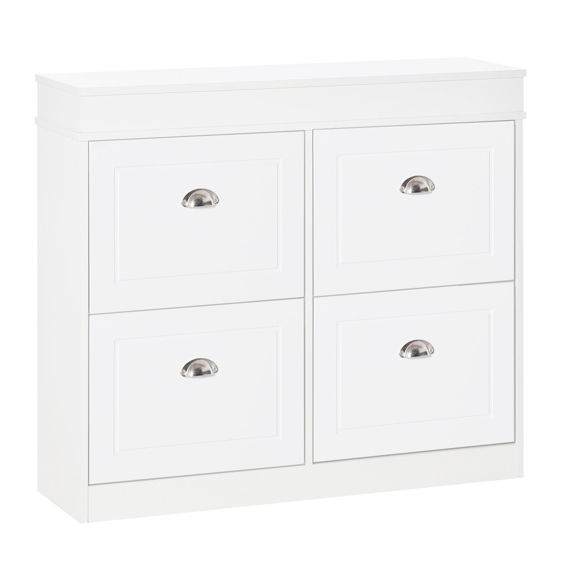 MCL Shoe Cabinet with 4 Flip Drawers Wood Tipping Bucket Narrow Storage Cupboard with Adjustable Shelf Hall Organizer for Entrance Foyer White