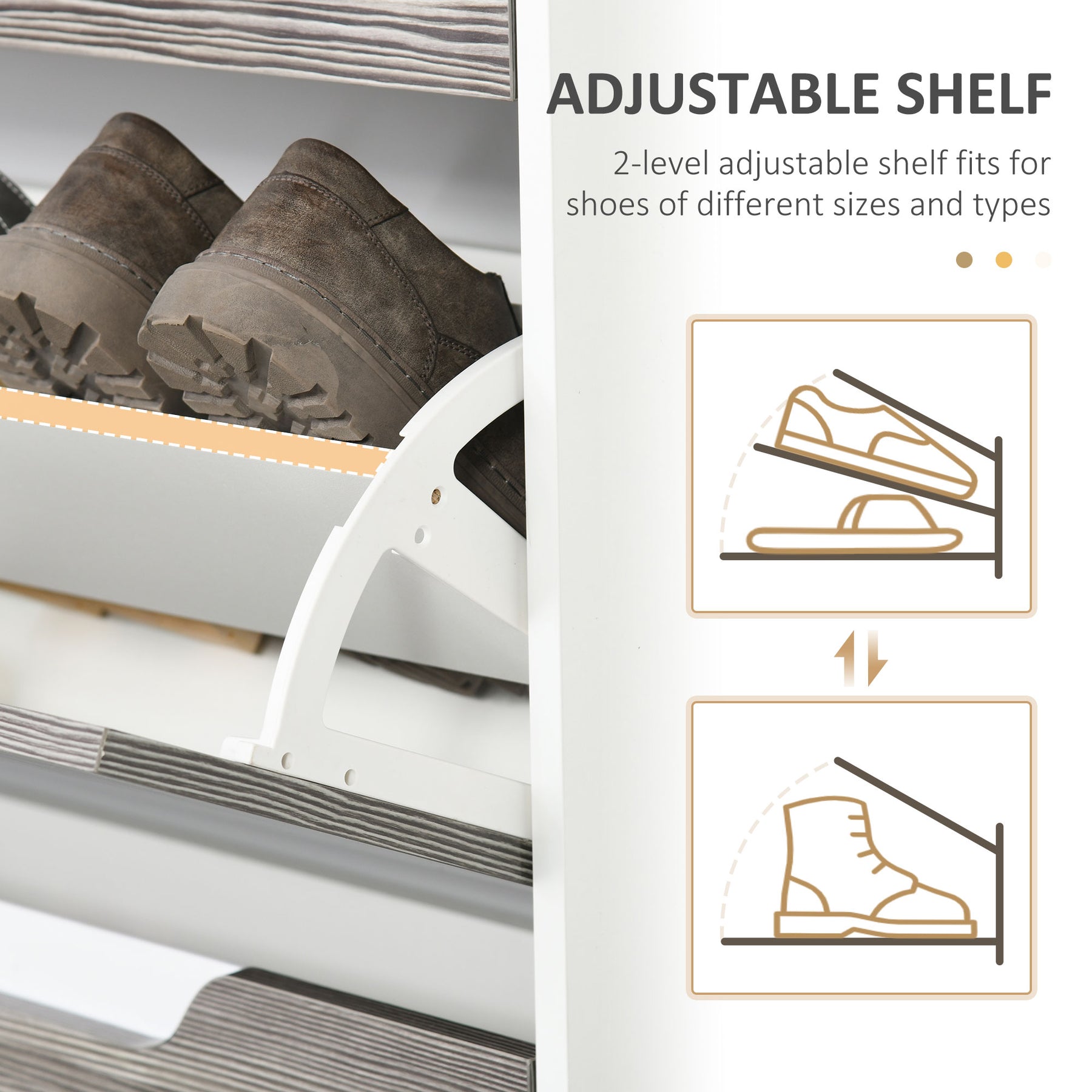 Give shoes and more somewhere stylish and protective to keep them - grab this narrow shoe cabinet from MCL. There are two flip drawers, each can hold eight pairs - great for use with the family or your flatmates. The inner shelf can be set to two different positions for storage, which fits your shoes better. This tall shoe cabinet is made from a blend of MDF and particle board, so it's robust. Finished with a handy top drawer and glass shelf, offering even more storage and display space.