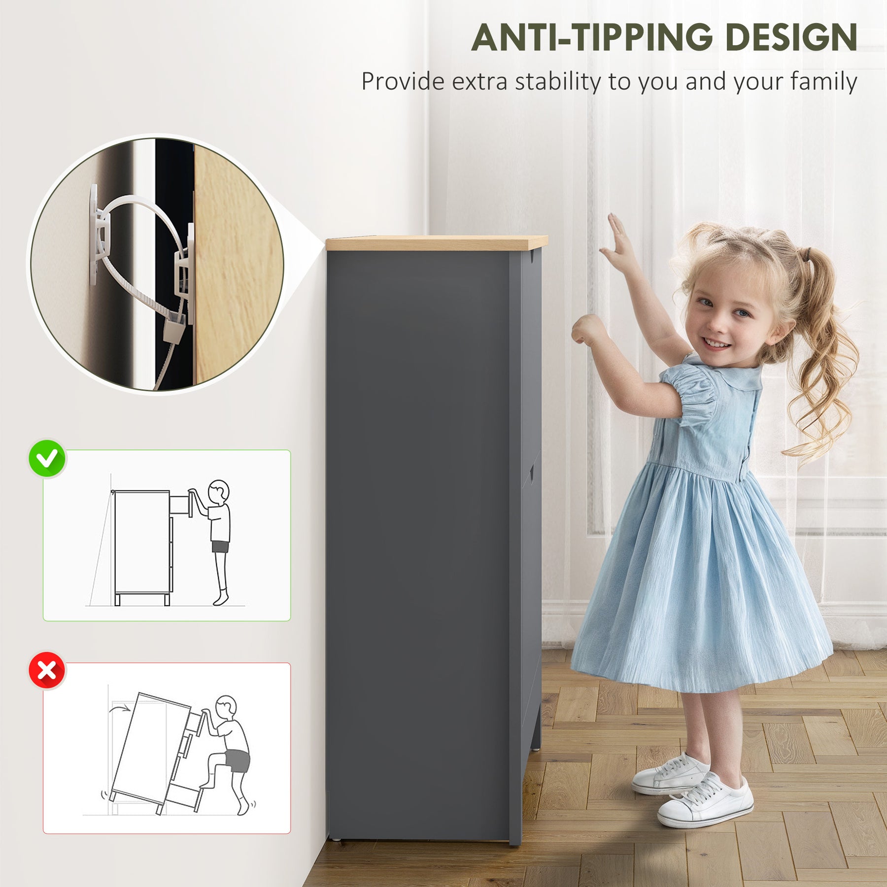This compact shoe cabinet from HOMCOM will help to keep your home effortlessly decluttered. A particle board construction ensures a tough and solid frame, with a smooth coating so it can be cleaned easily. Each drawer features a two-level shelf - holds up to 6-12 pairs of shoes. Groove handle to open and close easily. Complete with a flat tabletop for extra holding and display space, with feet to keep the unit balanced.