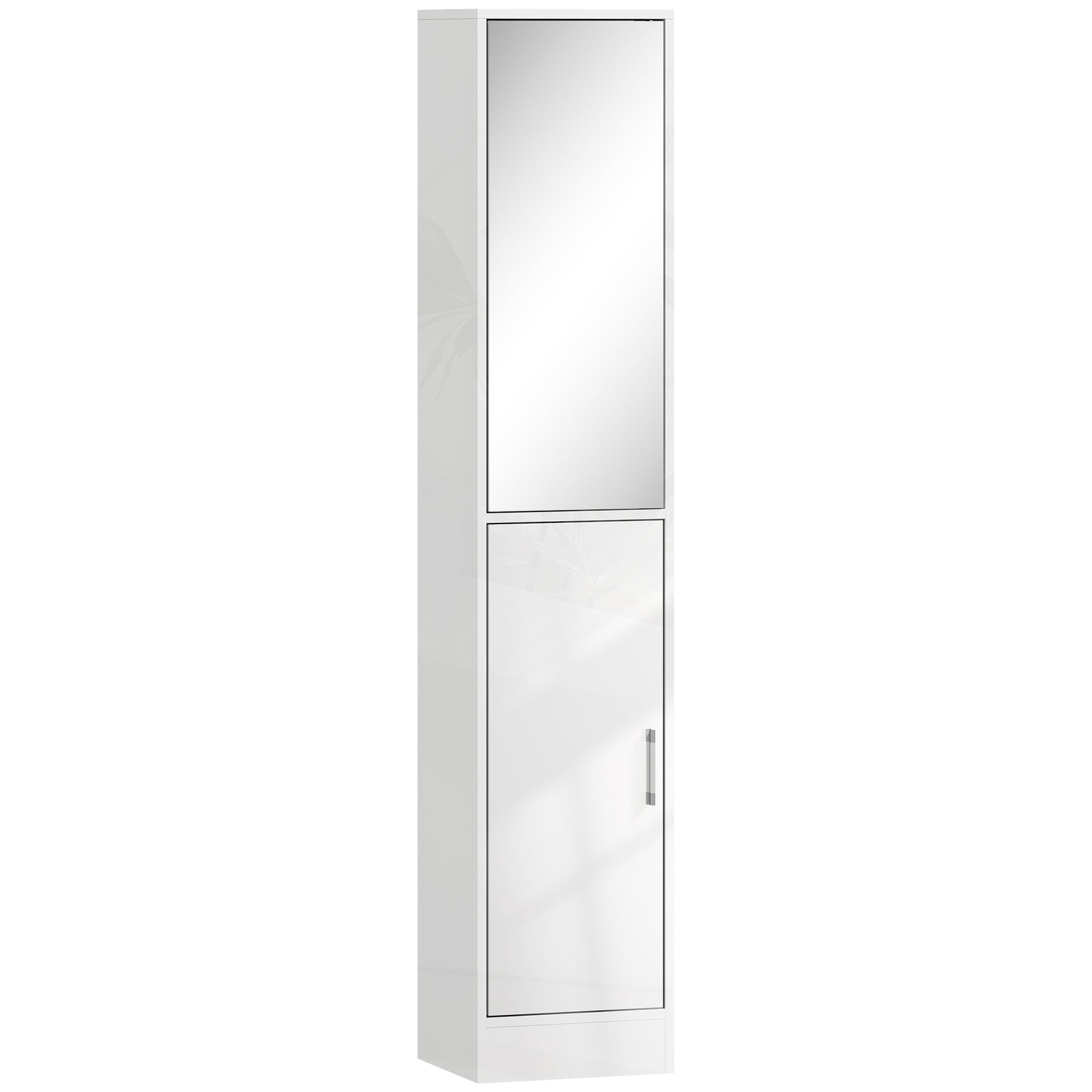 A beautiful and tidy bathroom starts with this slimline cabinet from kleankin. Inside, there are five shelves which offer plenty of storage - separate sections give each family/flat member their own individual space. Two-cupboard design comes with two doors: top is fitted with a mirror so you can get ready, with push-open operation to open/close easily; bottom is fitted with handle. Made from particle board, it's robust and suitable for everyday use, finished with safe anti-tipping straps.