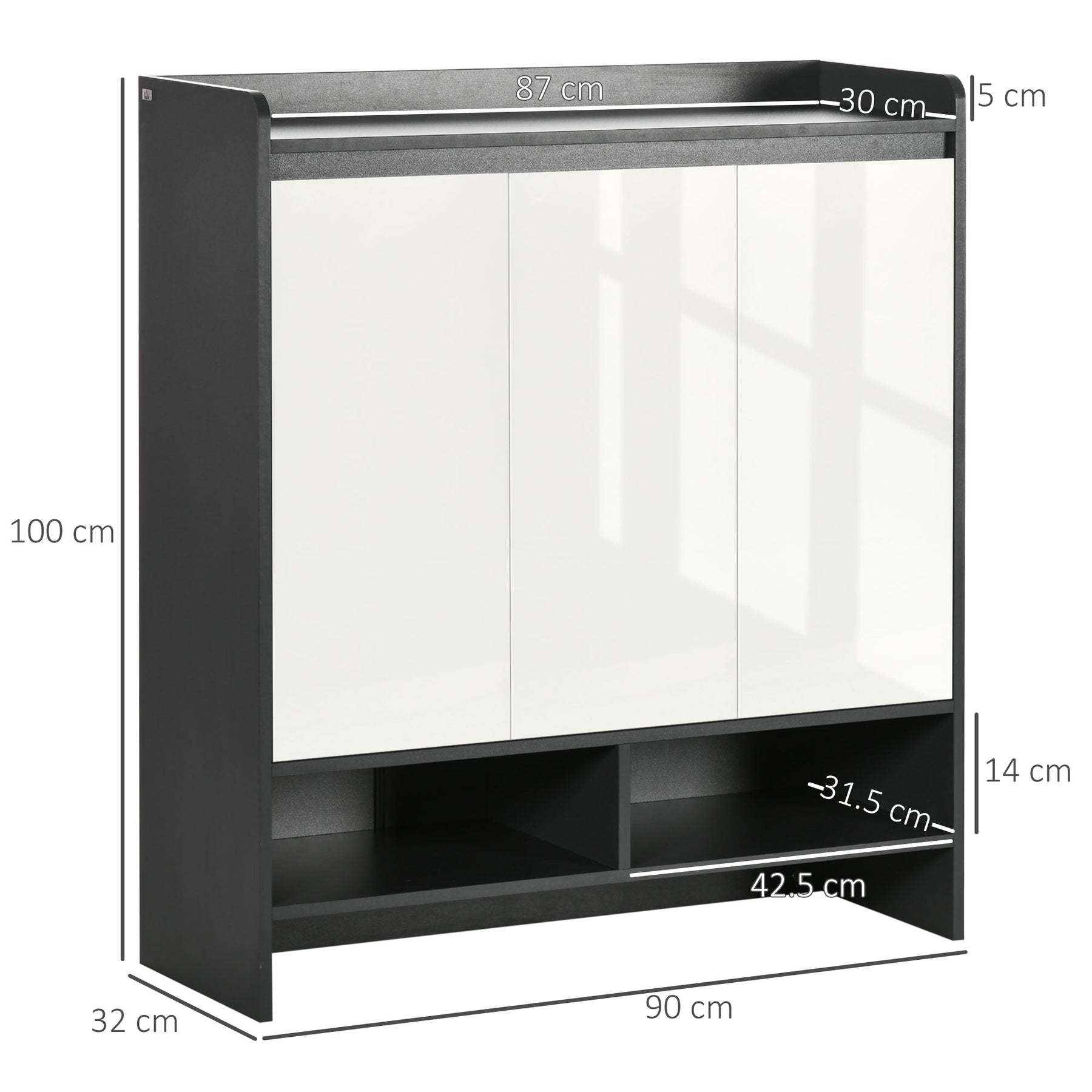 MCL High Gloss Shoe Cabinet with White Doors and Open Shelves, Hallway Shoe Cupboard Storage Organizer for 19 Pairs of Shoes, Grey