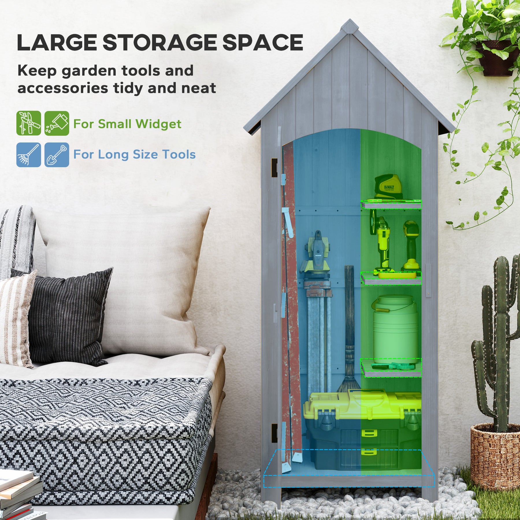 MCL Wooden Garden Storage Shed with 3 Shelves, Outdoor Tool Storage Cabinet with Tilt Roof and Lockable Door, 77.5 x 54.2 x 179.5 cm, Grey