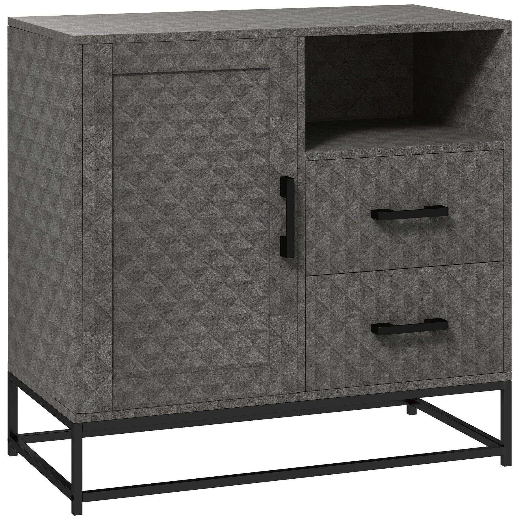 Discover the charm and functionality of the sideboard. This versatile piece features a storage cupboard with an adjustable shelf, an open compartment and two drawers, ensuring that every item is stored neatly and within easy reach. It' s a stylish and practical solution for any home, ensuring everything has its place while adding a touch of elegance to your decor.
