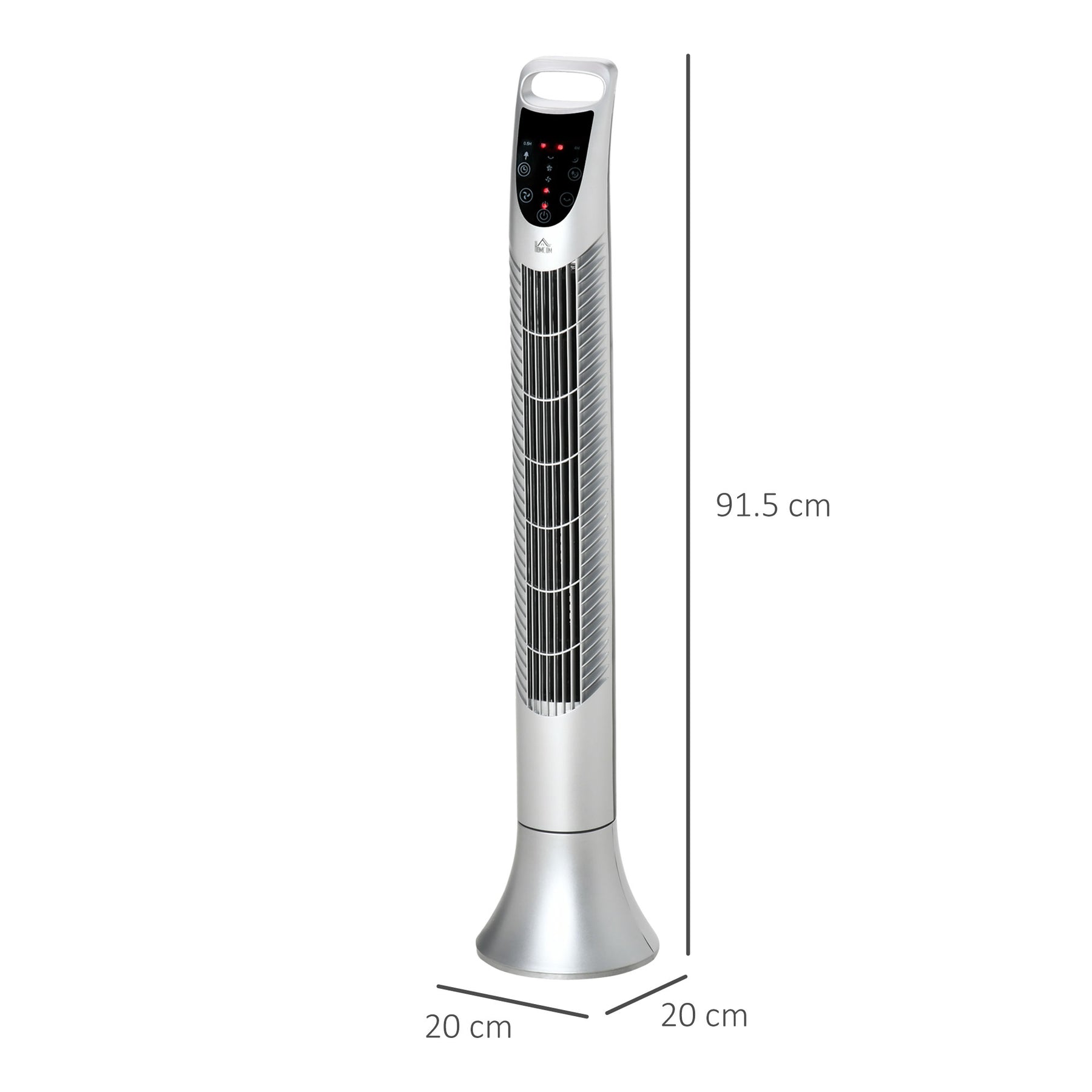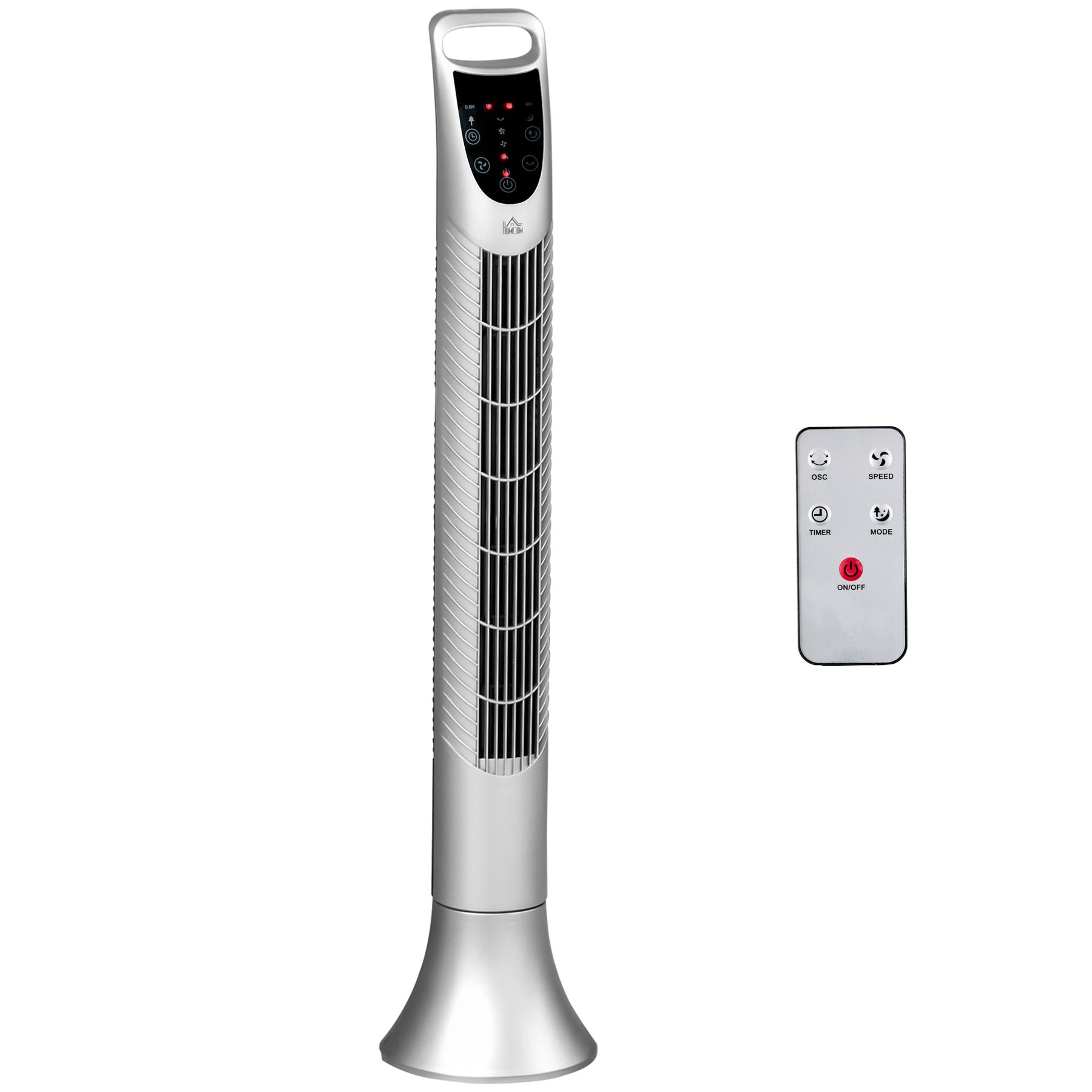 MCL 36'' Freestanding Tower Fan, 3 Speed 3 Mode, 7.5h Timer, 70 Degree Oscillation, LED Panel, 5M Remote Controller, Silver