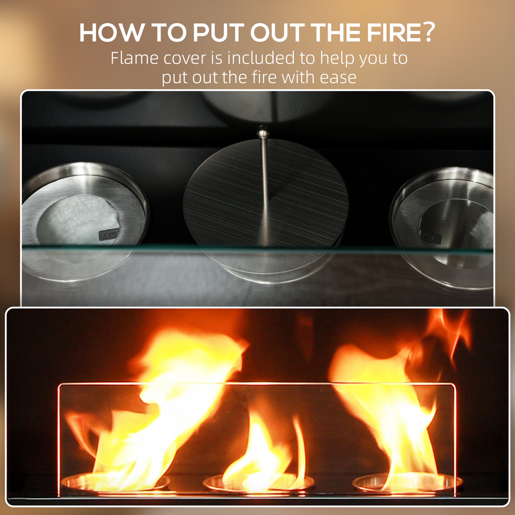 • Powered by bioethanol: heat and flames, without smoke or odour