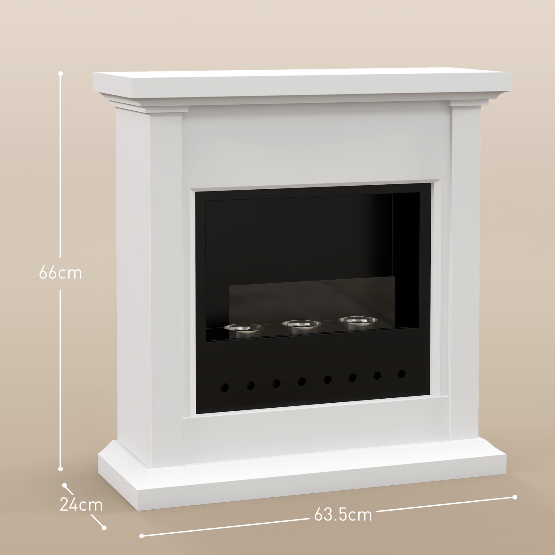Bioethanol Fire Heater, with Mantelpiece - White