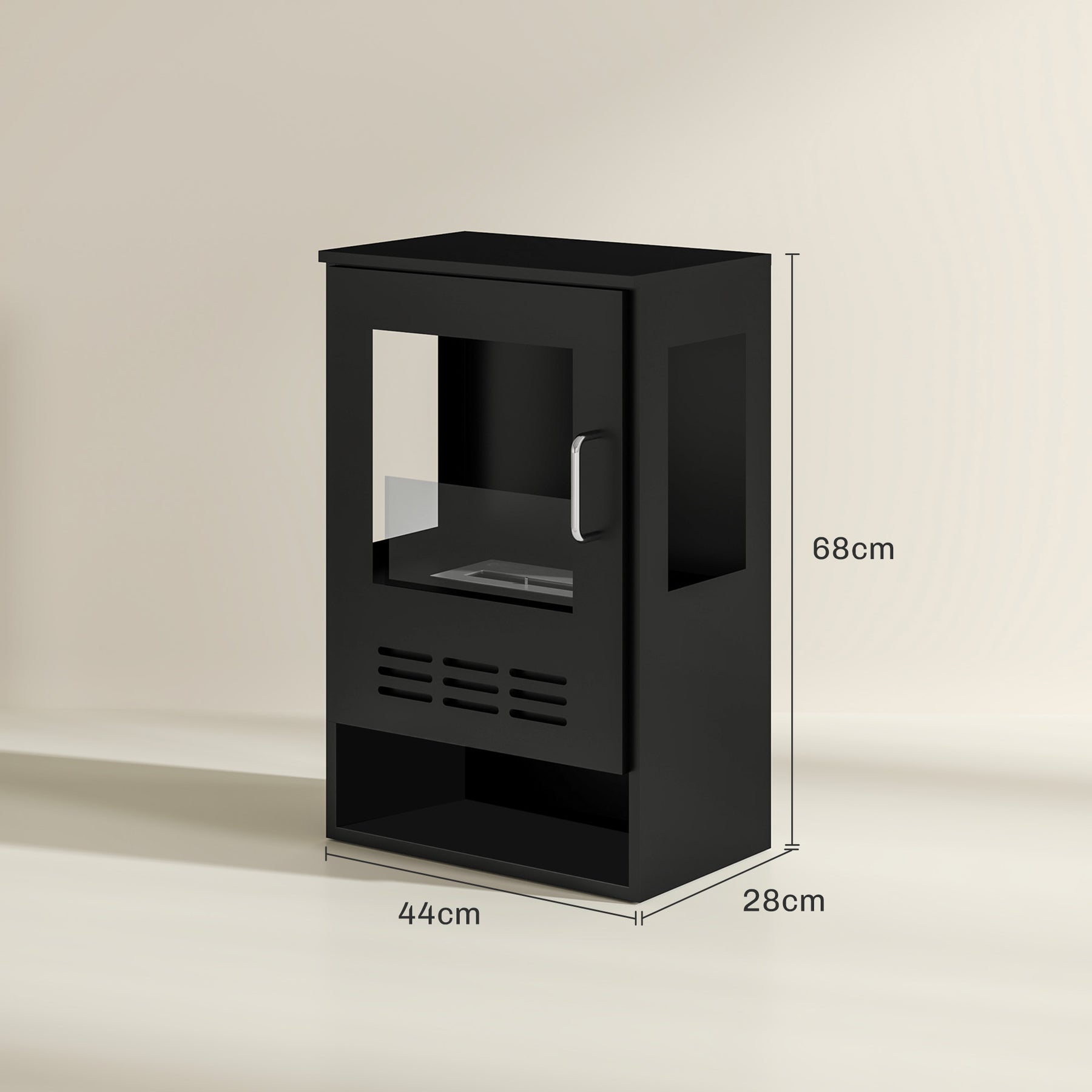 Ignite a cosy ambience with the Ethanol Fireplace. This sleek, black-finished bioethanol fireplace features real flames that safely nestle on a lower shelf, suitable for warming up your living space. It's a clean-burning indoor fire that offers up to 3.3 hours of burn time, efficiently heating areas of 15-20㎡ with the security of a protective glass panel.