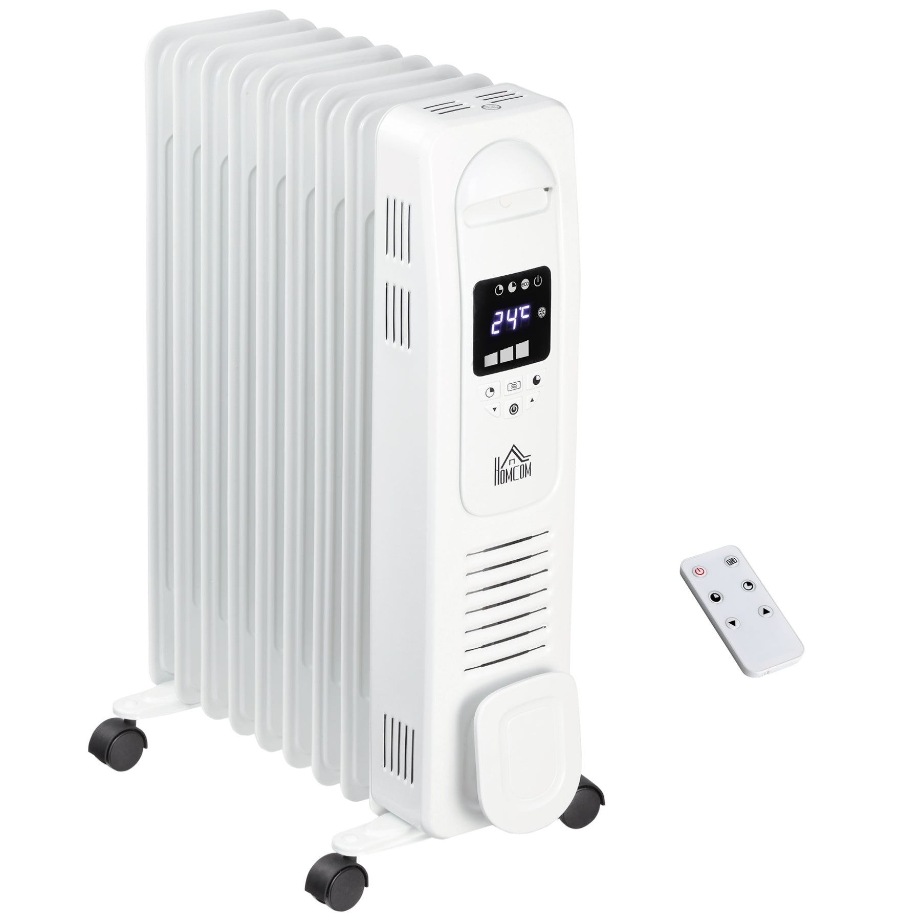 MCL 2000W Digital Oil Filled Radiator, 9 Fin, Portable Electric Heater with LED Display, Timer, 3 Heat Settings, Safety Cut-Off and Remote Control, White