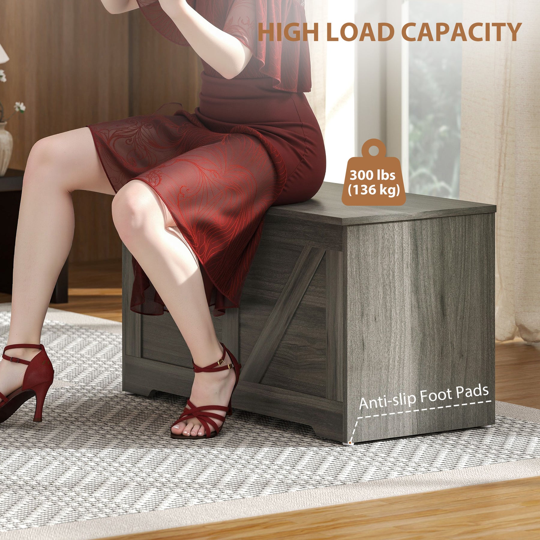 - Anti-slip foot pads gently protect floors