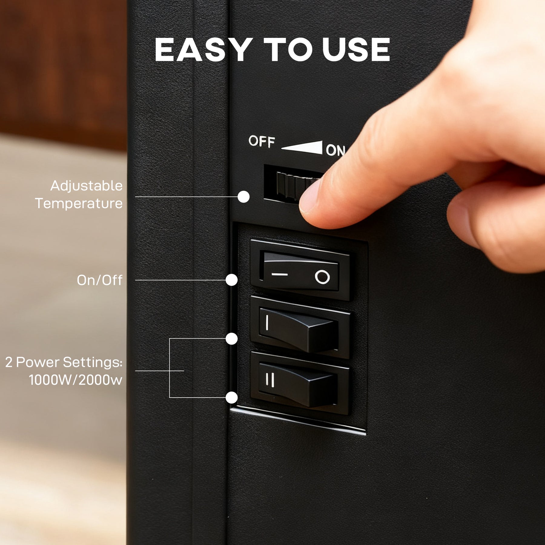 Tired of chilly rooms and inconsistent temperatures disrupting your day? This HOMCOM electric fire transforms your space into a cosy retreat. Its realistic flame effect creates a warm ambiance, while powerful 1000/2000W settings quickly heat your room. Set your optimal temperature with the thermostat for consistent, personalized warmth. This electric fireplace offers the charm of a real fire, ensuring your comfort from quiet evenings to busy workdays.