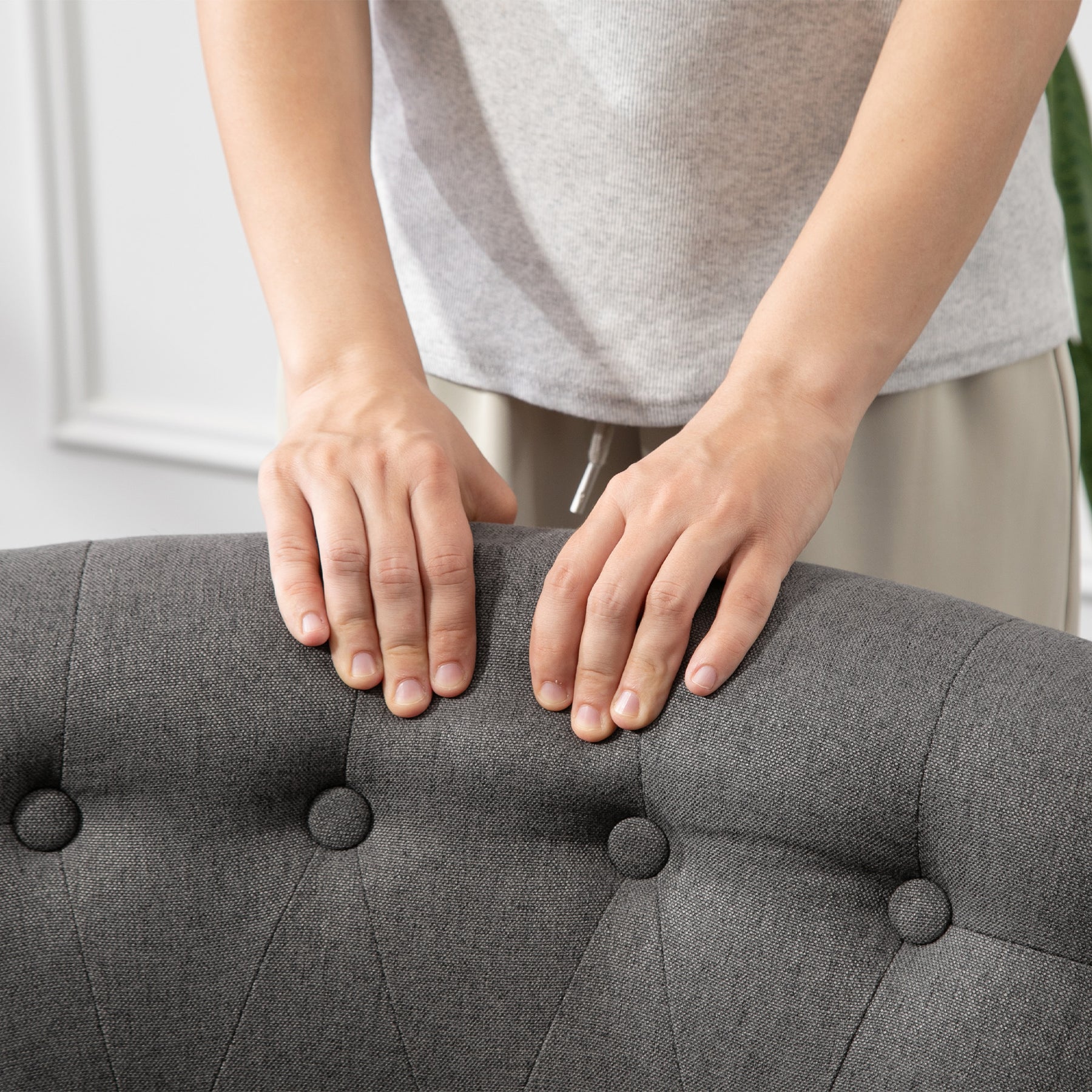 Sink into something comfortable without sacrificing on your precious home space with this accent chair, from HOMCOM. Linen-look fabric, the curved wooden legs and delicate button tufting on the back evokes a vintage style - a statement in any setting. Soft cushioned seat and curved backrest for comfort and support. Something different for this season and beyond.