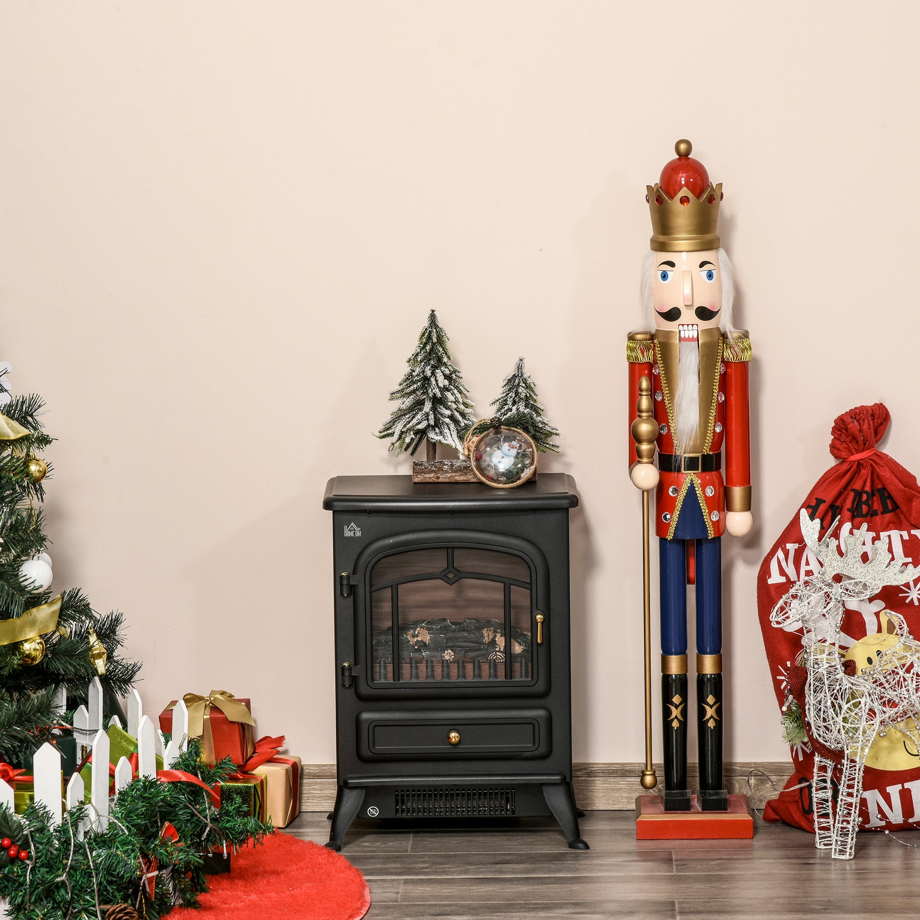 This HOMCOM freestanding fire place is designed with a feel of a real wood burning fireplace. It is made from steel in a compact design with a glass window. The internal temperature of the fireplace can be controlled by the thermostat that ensures it will automatically power off when the product is high temperature. The power can be adjusted at two levels of 950W and 1850W. Our electric wood burner is a great vintage design and would complement any home décor.