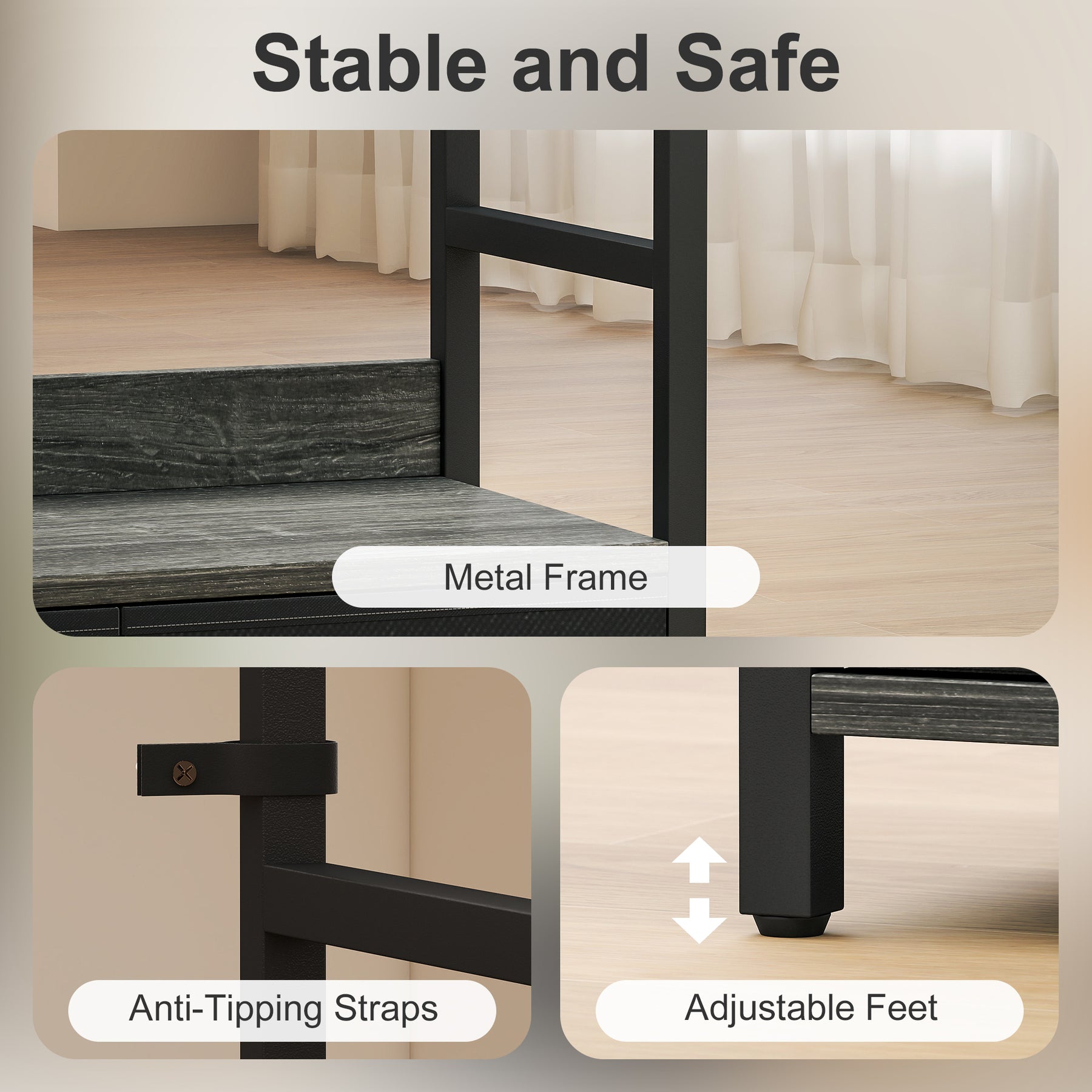 - Adjustable foot pads and anti-tipping straps ensure stability and safety