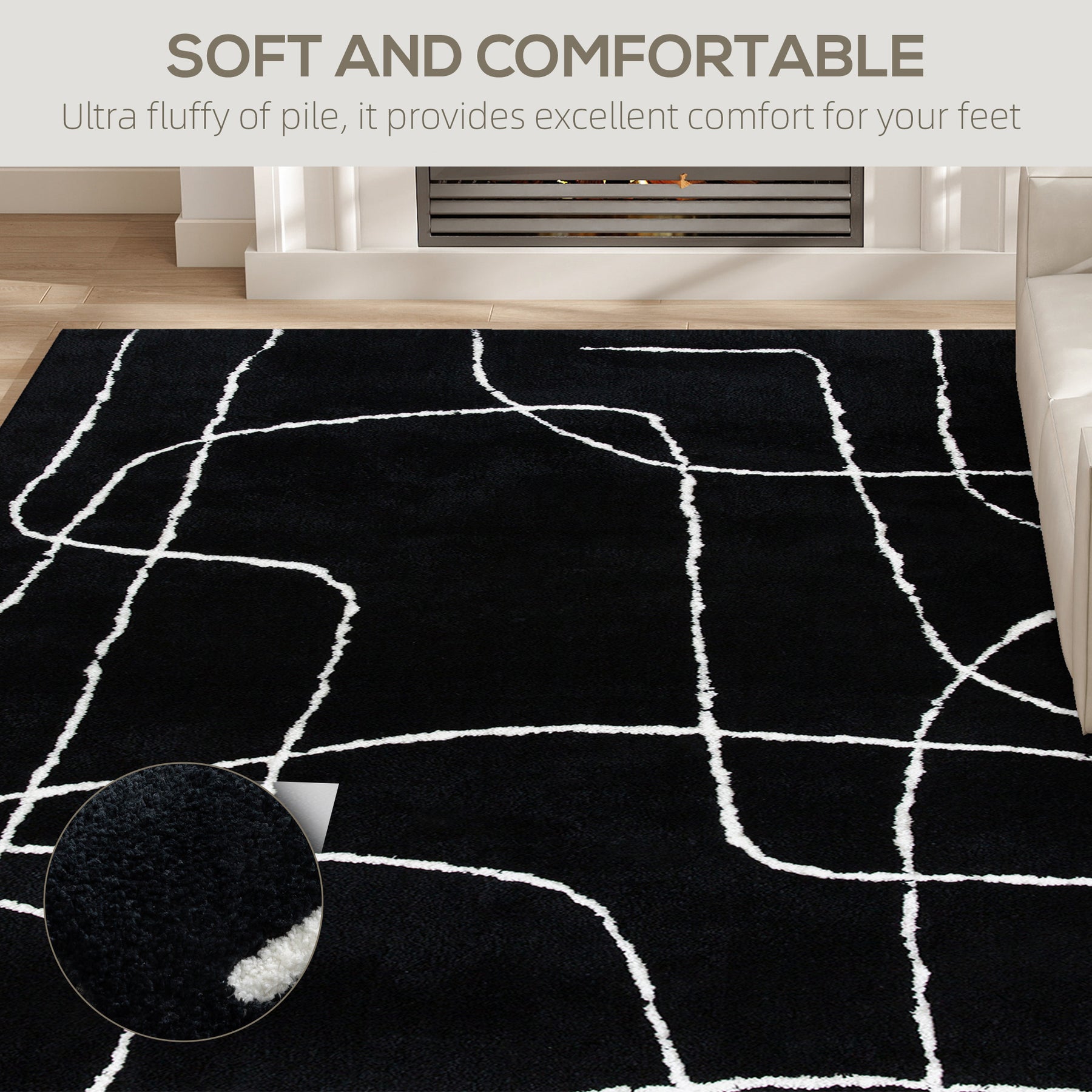 Transform your home into a haven of comfort and style with the HOMCOM area rug. Crafted from 100% polyester, its plush texture invites relaxation, making it great for any space. The black base with abstract white lines adds a modern touch, effortlessly enhancing living rooms or social areas. This versatile large rug fits seamlessly into bedrooms, hallways, or cosy corners.