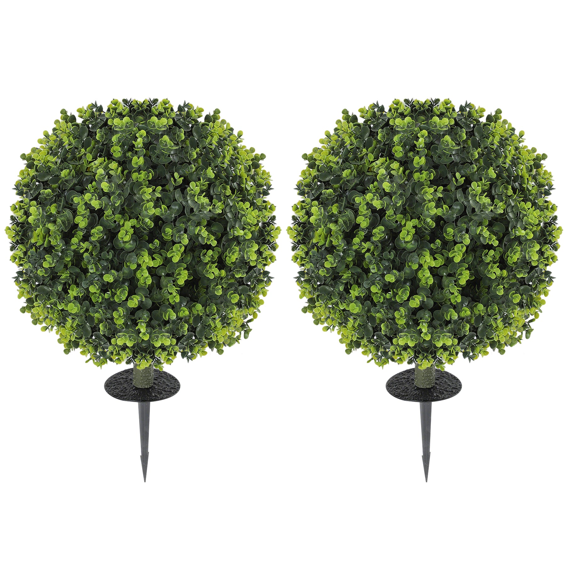 Transform your space effortlessly with HOMCOM's Artificial Plants! This 2-pack features realistic boxwood topiary balls with lush eucalyptus leaves, suitable as the small fake plants indoors and out. UV-resistant and maintenance-free, just pop them into the ground or a planter and enjoy the green without the fuss. Friendly for those without a green thumb!
