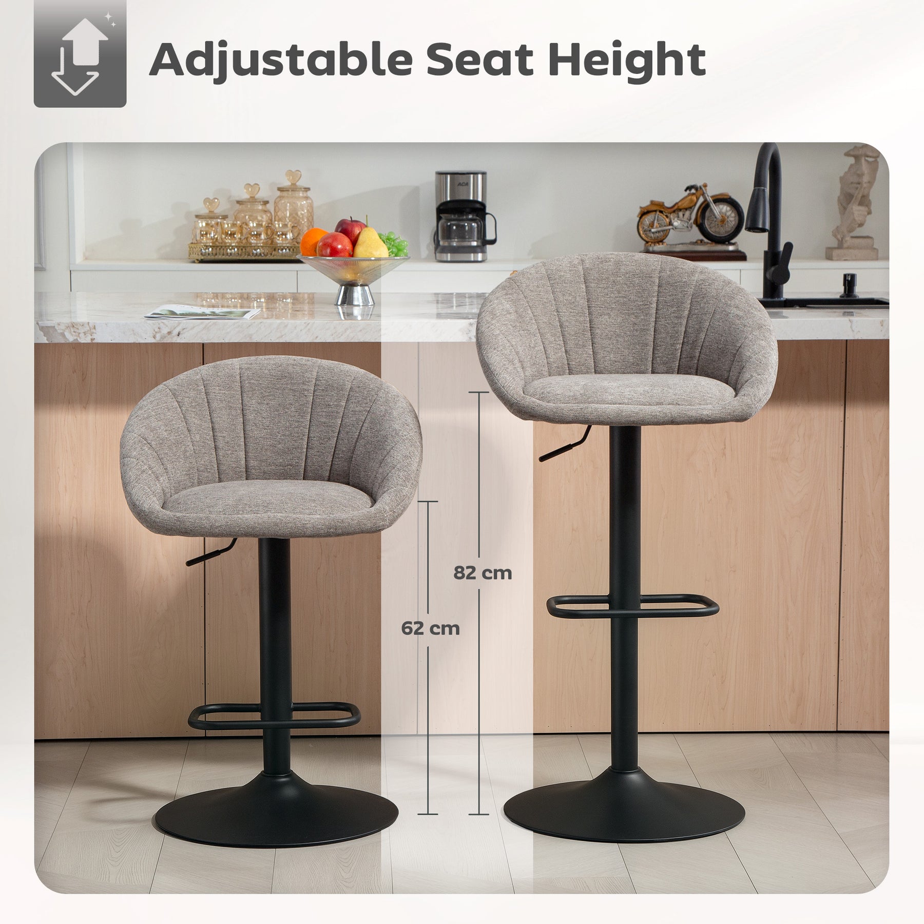 Everyday comfort, in simple style with these two HOMCOM bar stools. The adjustable 62-82 cm height allows you to sit at the countertop to the level you want, with the 360° seat movement working in sync with your body movement - helps reduce strain. Sit down, settle in and enjoy the moment. Comes in a set of two for a matching look across the home.