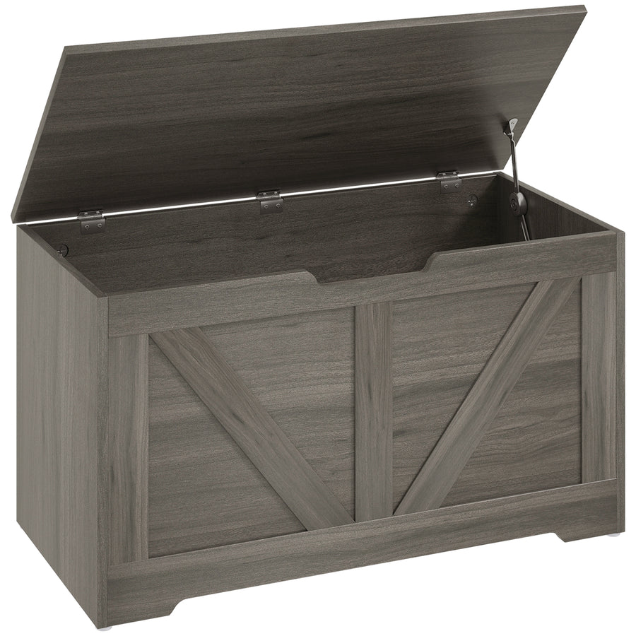 HOMCOM 100L Home Storage Box, with Safety Hinges - Black Wood-Effect