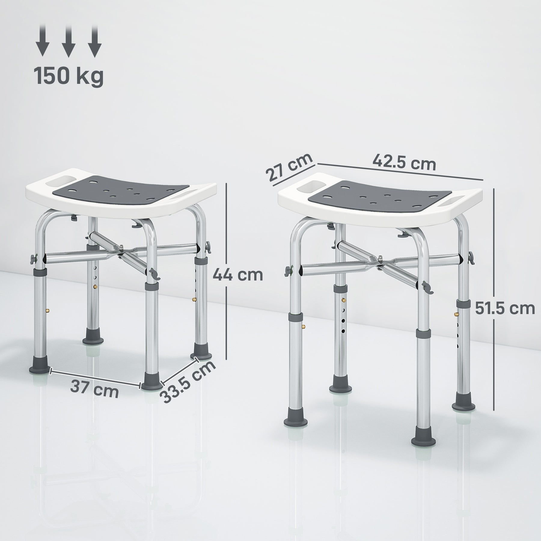 Made for assistance in the shower or bath, our shower chair for the elderly from HOMCOM is suitable for the elderly, injured or those who require extra assistance whilst showering or bathing. Adjustable to four different heights, the shower chair for the disabled help you find the most comfortable and safe position to sit. Its curved seat design with padding makes the shower seat for elderly comfortable to use. It's finished with four large suction foot pads for safety and stability.