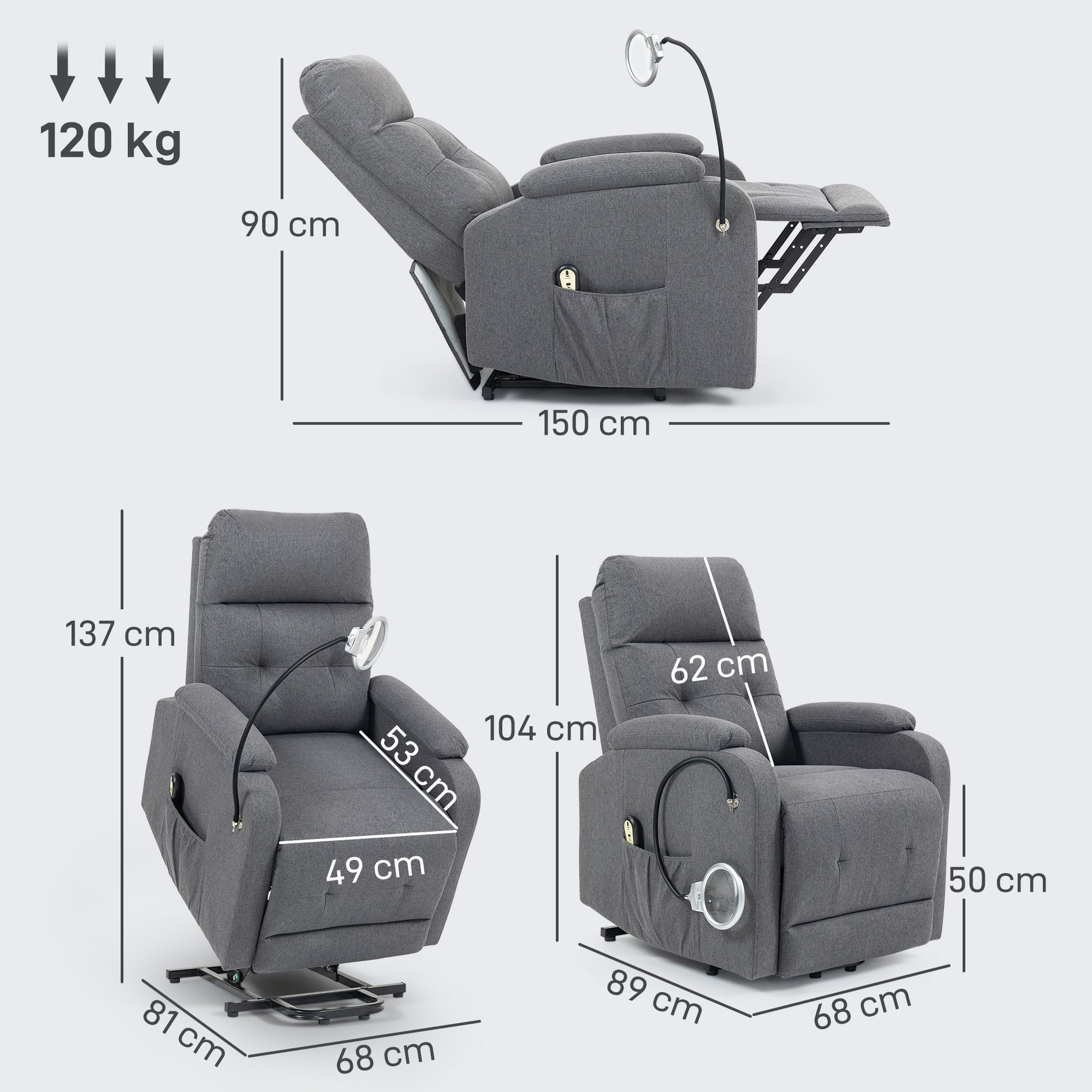 For those with mobility issues - this HOMCOM riser and recliner chair is here to help. Rising up to a 45° angle, it helps you to sit and relax whenever you want. With the 135° back reclining angle and footrest, you can lie back and elevate your body however you want. It comes with a built-in LED light with adjustable magnifying glass - read, work and complete tasks with ease and without having to move.