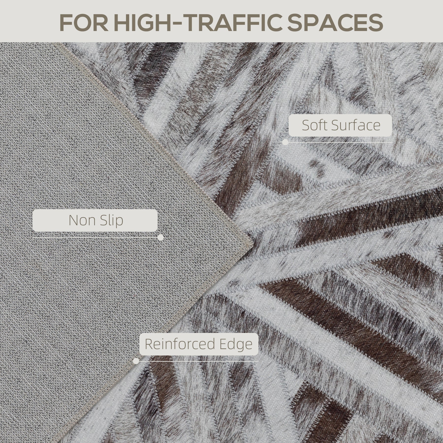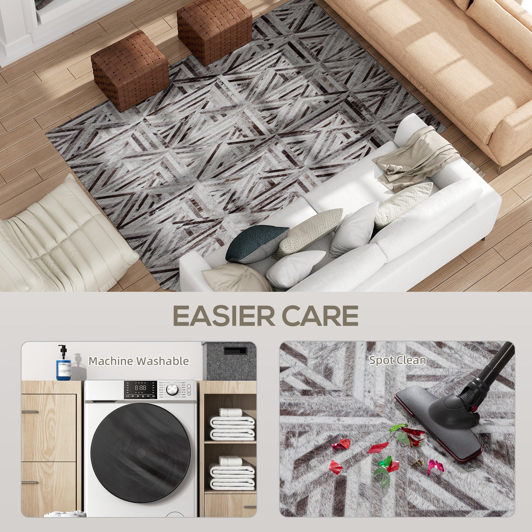Step into style with the HOMCOM area rug, featuring a chic faux leather patchwork design and plush chenille material. This large rug for living room offers a modern touch and is brilliantly foldable for easy care—machine washable or a quick wipe! Plus, it stays put safely with its non-slip design, suitable for any room needing a splash of luxury.