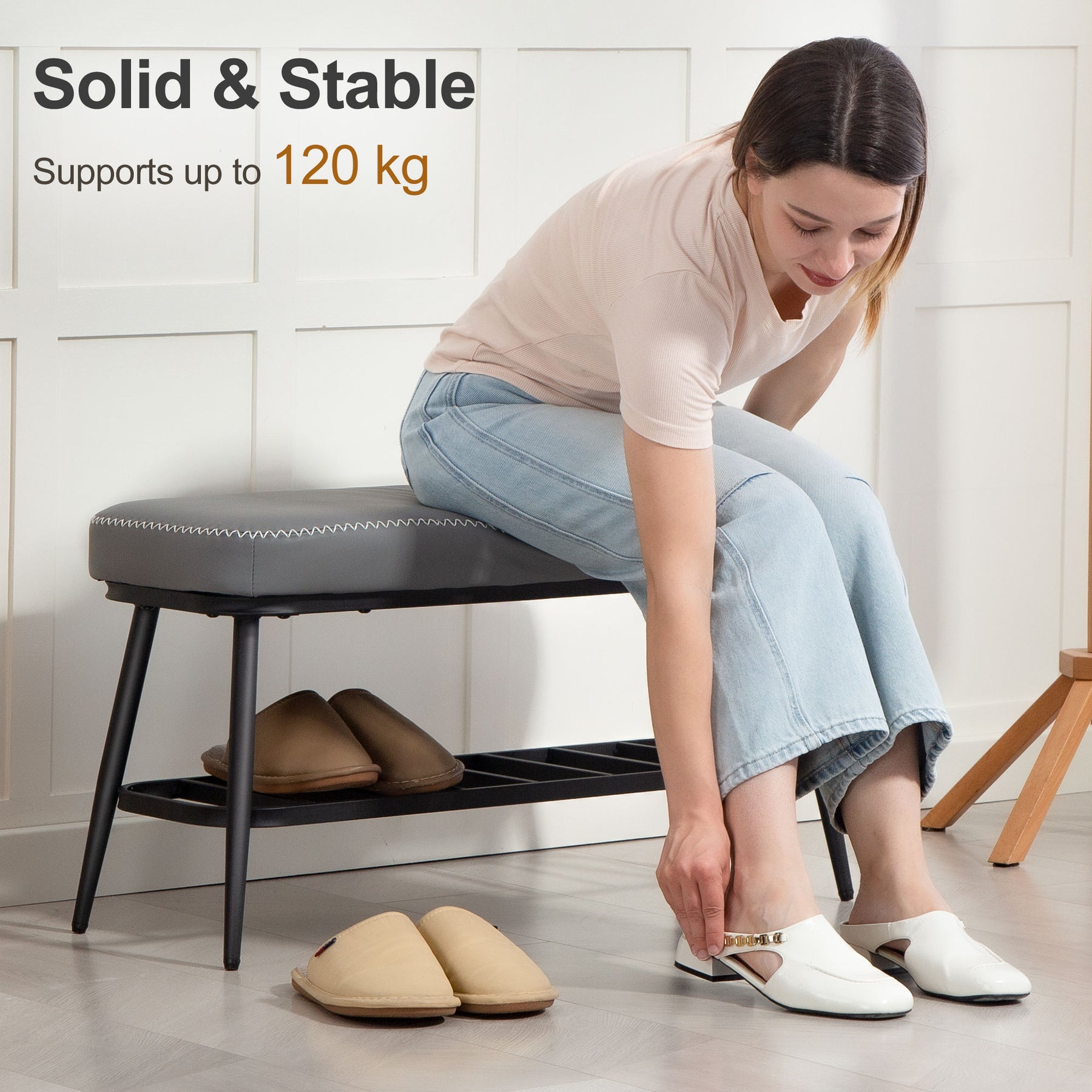 Arriving home to a cluttered entryway can be stressful. Imagine the daily struggle of finding shoes or balancing precariously. The HOMCOM shoe bench transforms this. Its plush 7 cm cushion offers a cosy spot to unwind after a long day. This HOMCOM shoe storage bench supports up to 120 kg, ensuring confidence with every use. Plus, the spacious shelf of this hallway bench keeps four pairs neatly organised, creating a serene, clutter-free entrance.