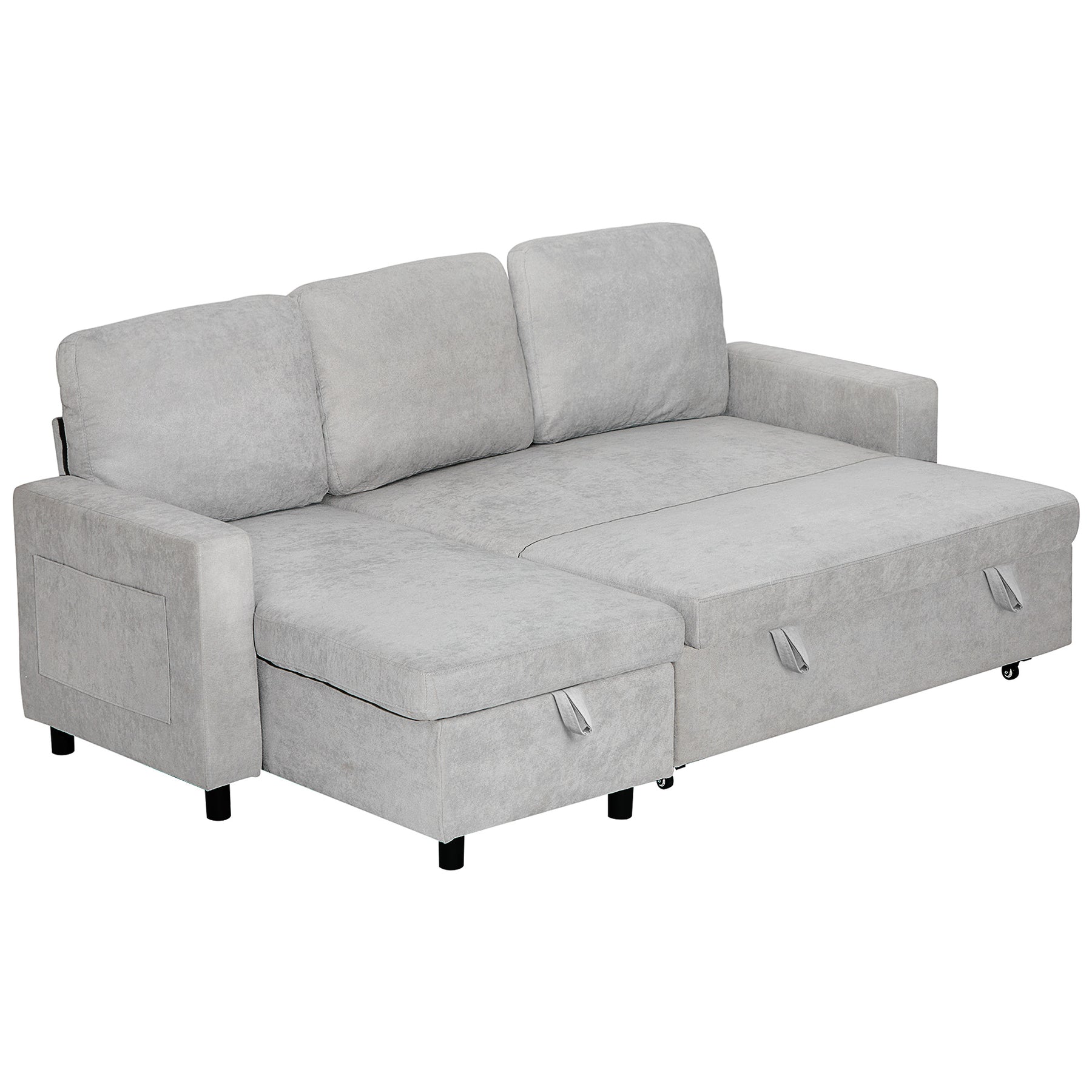 This three seater sofa bed is here from day to night. Convert from a loveseat into a double sofa bed with a simple pull. Plus, utilise the small storage under the chaise, suitable for blankets and more. Whether for comfortable everyday lounging or accommodating overnight guests, this L shaped sofa bed does it all.
