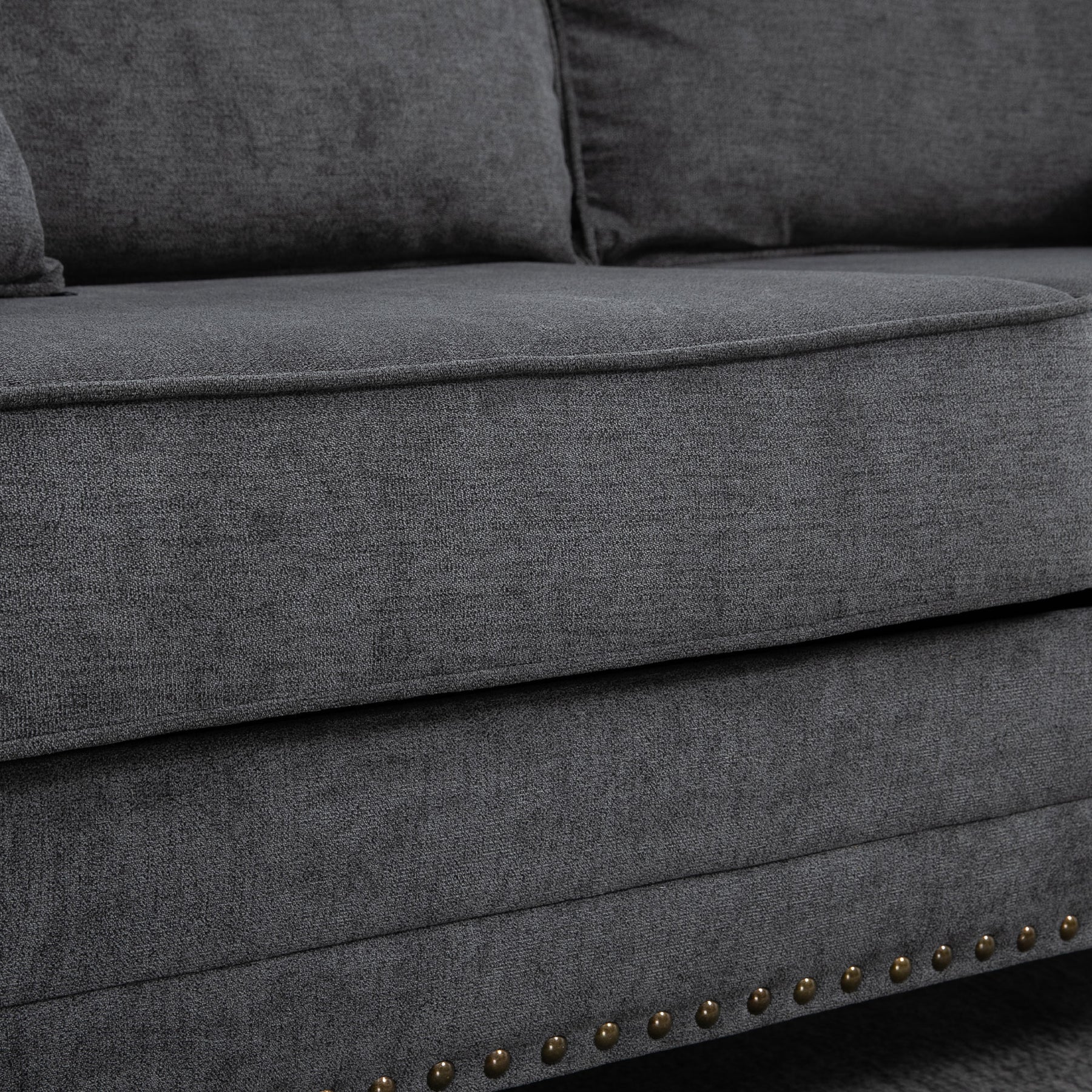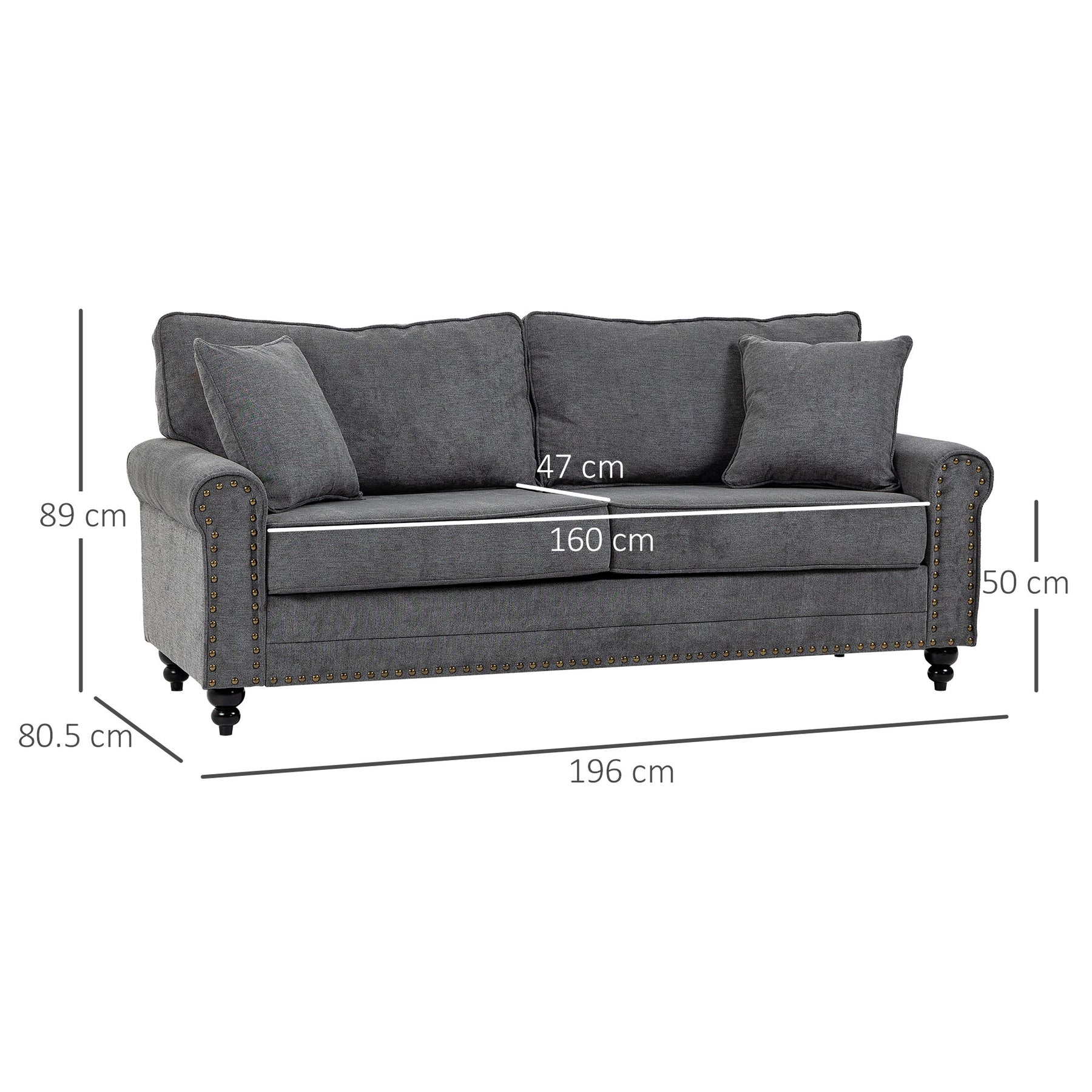 MCL 196cm 3 Seater Sofa, Fabric Sofa with Rubber Wood Legs, Nailhead Trim, 2 Pillows, Small Upholstered Couch Settee for Living Room, Guest Room, Grey
