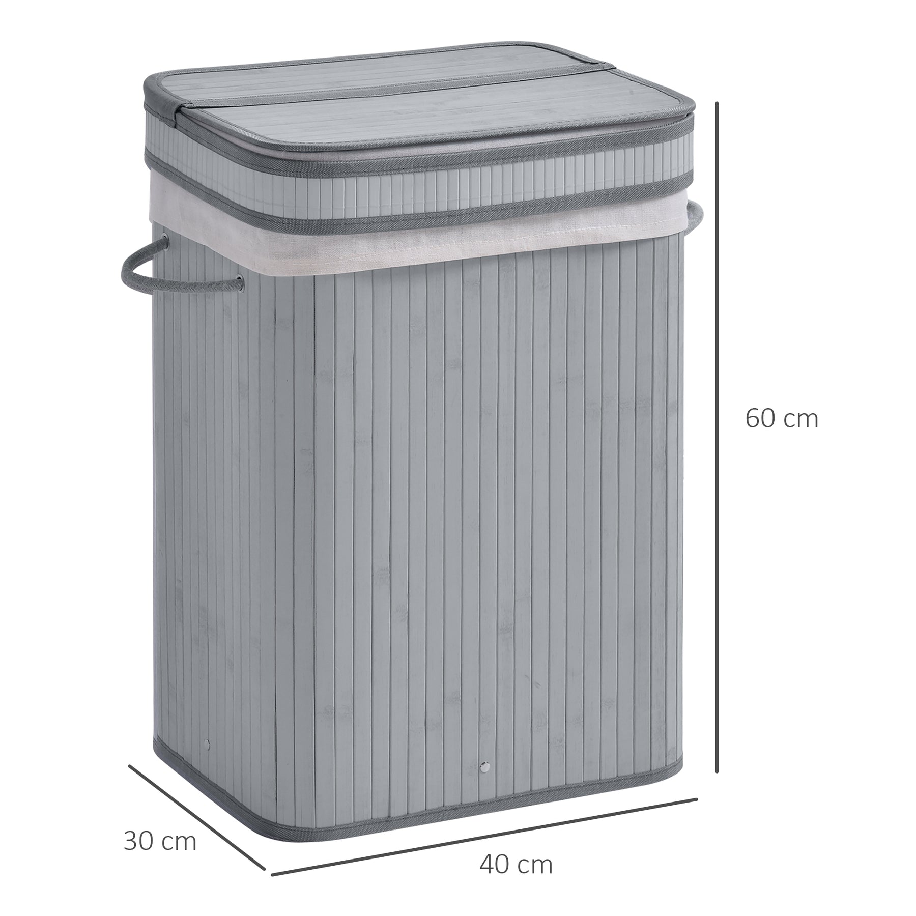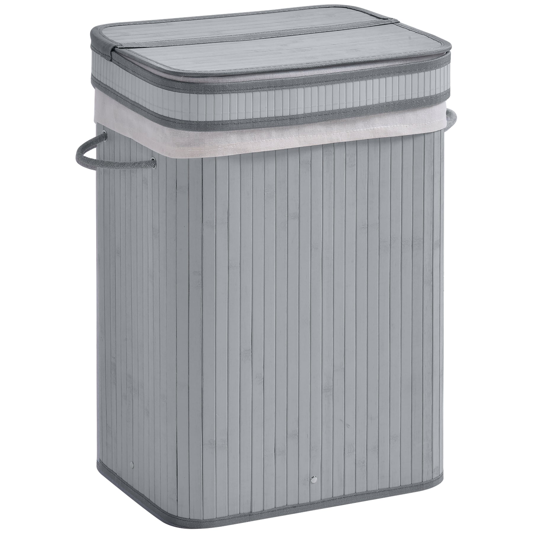 MCL 70L Natural Wood Laundry Basket A Compartment w/Flip Lid Removable Lining Handles Board Base Foldable Durable Water-Resistant Dirty Clothes Storage Home Organisation Grey