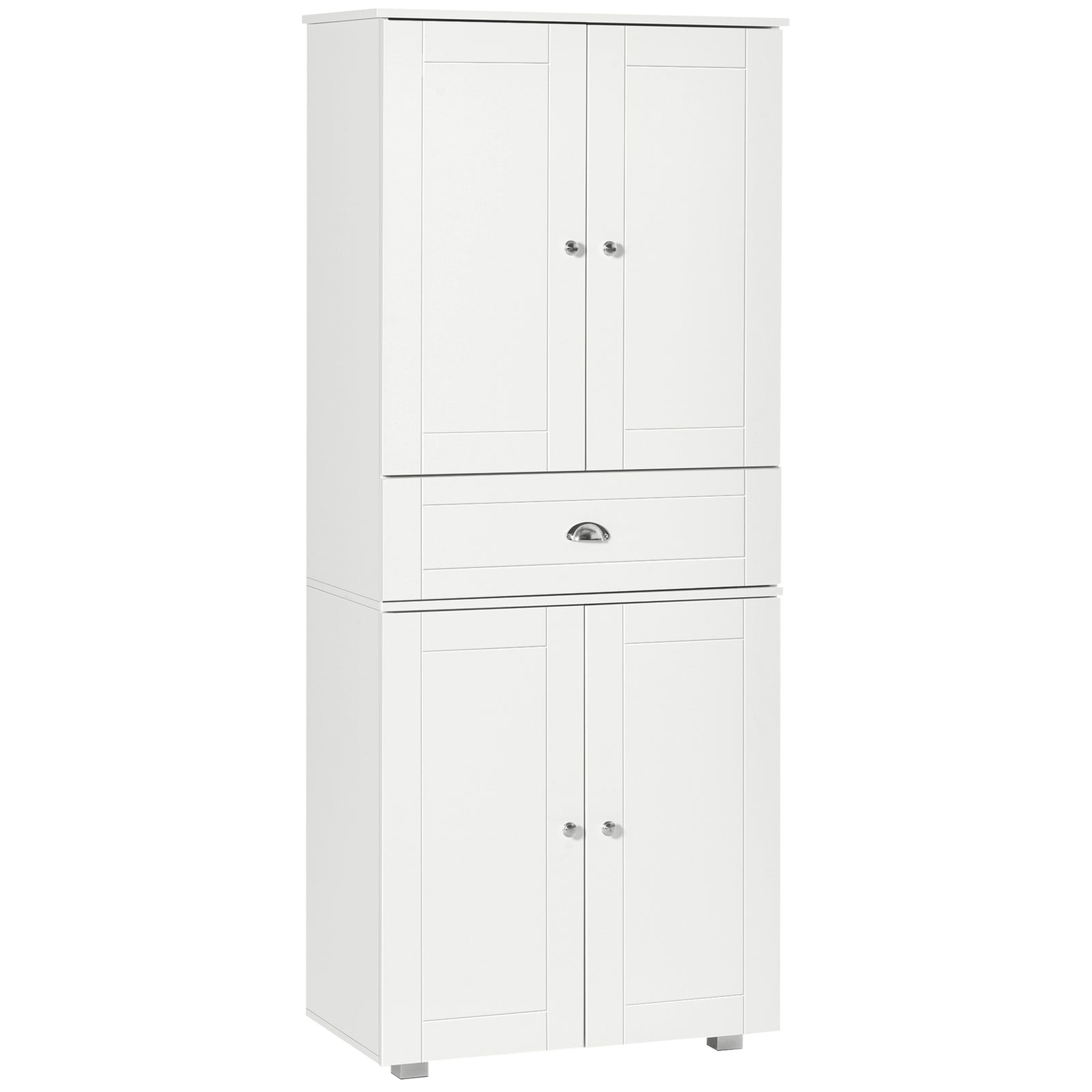 HOMCOM Freestanding Tall Kitchen Cupboard Storage Cabinets with Drawer and 3 Adjustable Shelves for Dining Room, Living Room, White