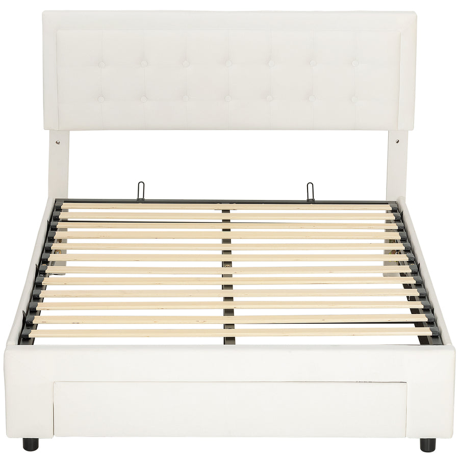 HOMCOM Double Ottoman Bed Frame, with Front Drawer - Cream