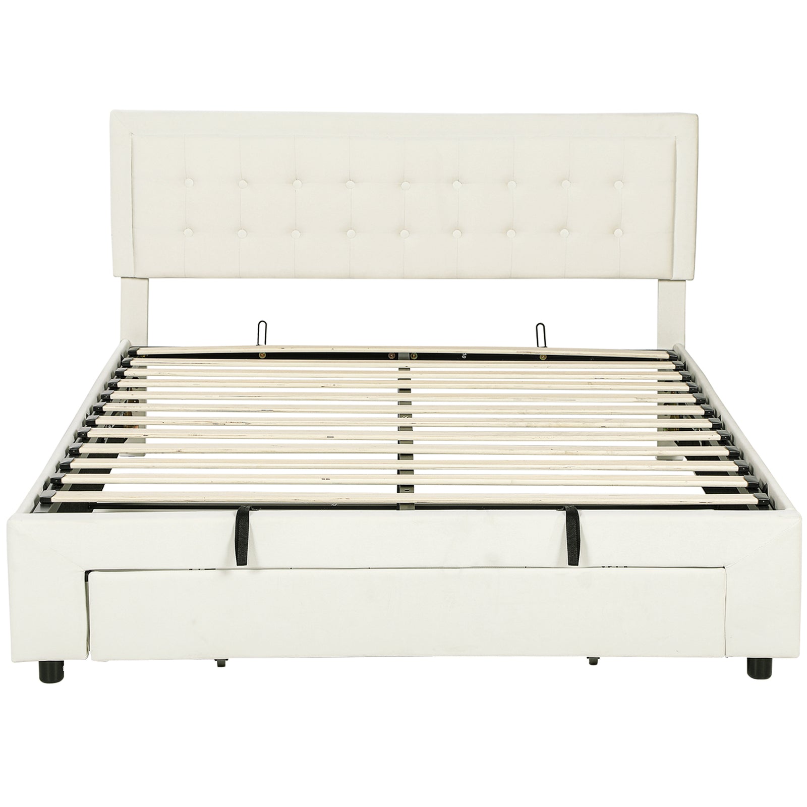 HOMCOM King Size Ottoman Bed Frame, with Front Drawer - Cream