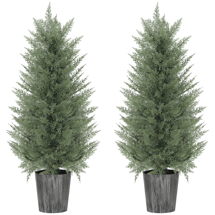 HOMCOM 90cm Artificial Cypress Trees Set of 2, UV Resistant Artificial Plants with Decorative Pot, Fake Plants for Indoor Outdoor Decor, Green