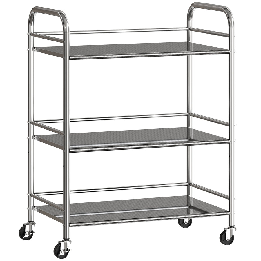 HOMCOM 3 Tier Stainless Steel Kitchen Storage Trolley with Adjustable Shelf - Silver