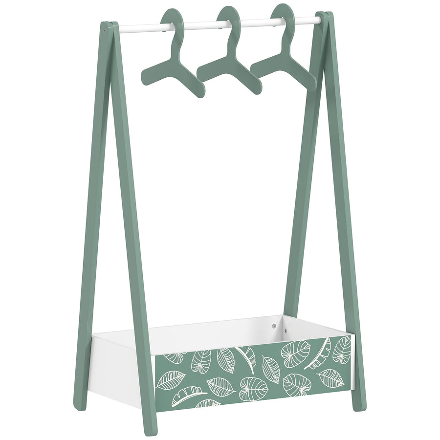 AIYAPLAY Baby Clothing Rack with Hangers, Storage Shelf for Bedroom, Leaf Theme, for Ages 3-6, Green