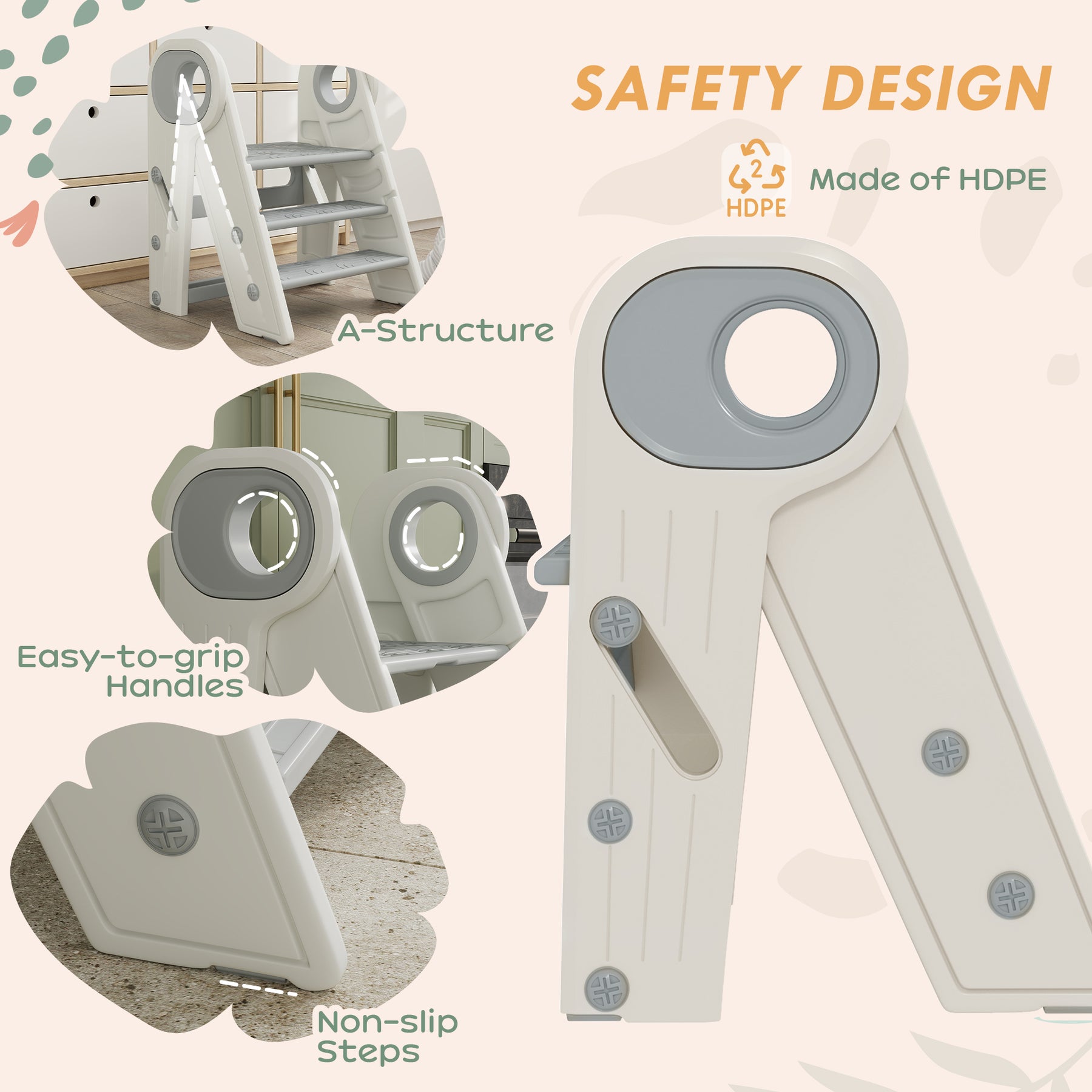 - Made from safe HDPE and PP with non-slip surface