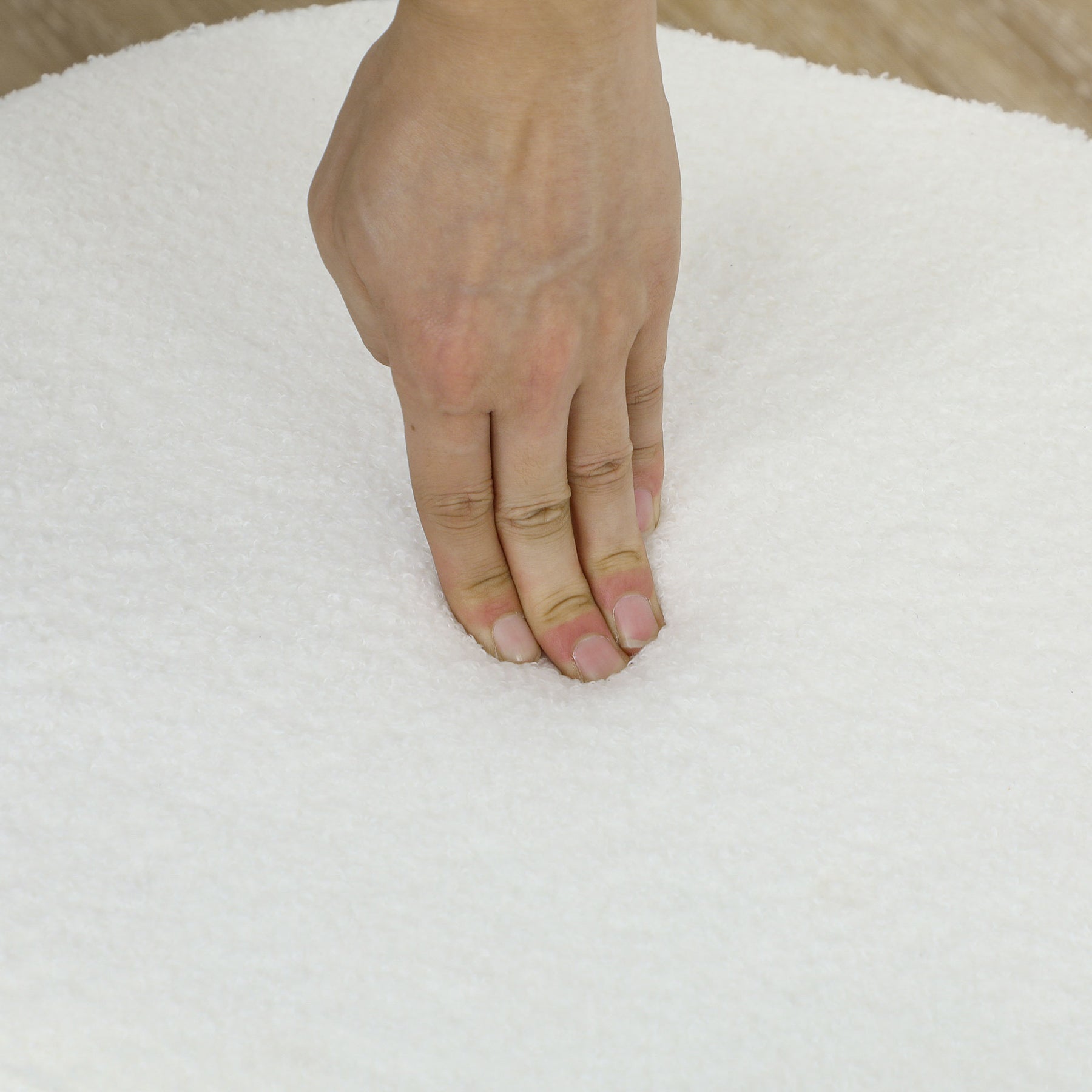 - Fleece-feel upholstery, in a boucle finish for a soft finishing touch