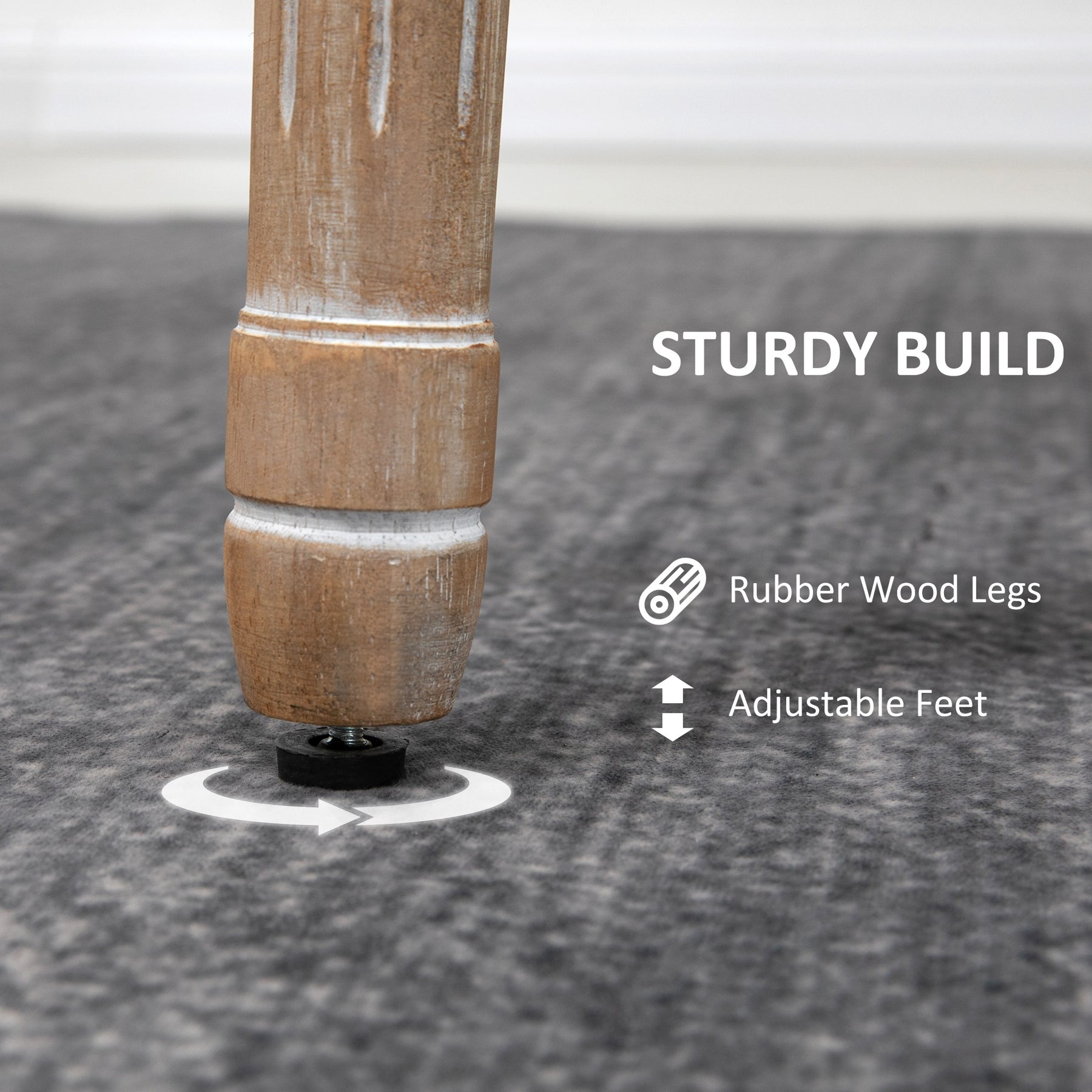 French inspired elegance for the home, with these two dining room chairs. Both frames are made from wood for strength, with the oval backs and fluted legs adding to the look. The thick sponge back and seat panels keep you comfortable, covered with smooth linen-look upholstery. Complete with adjustable feet for balance.