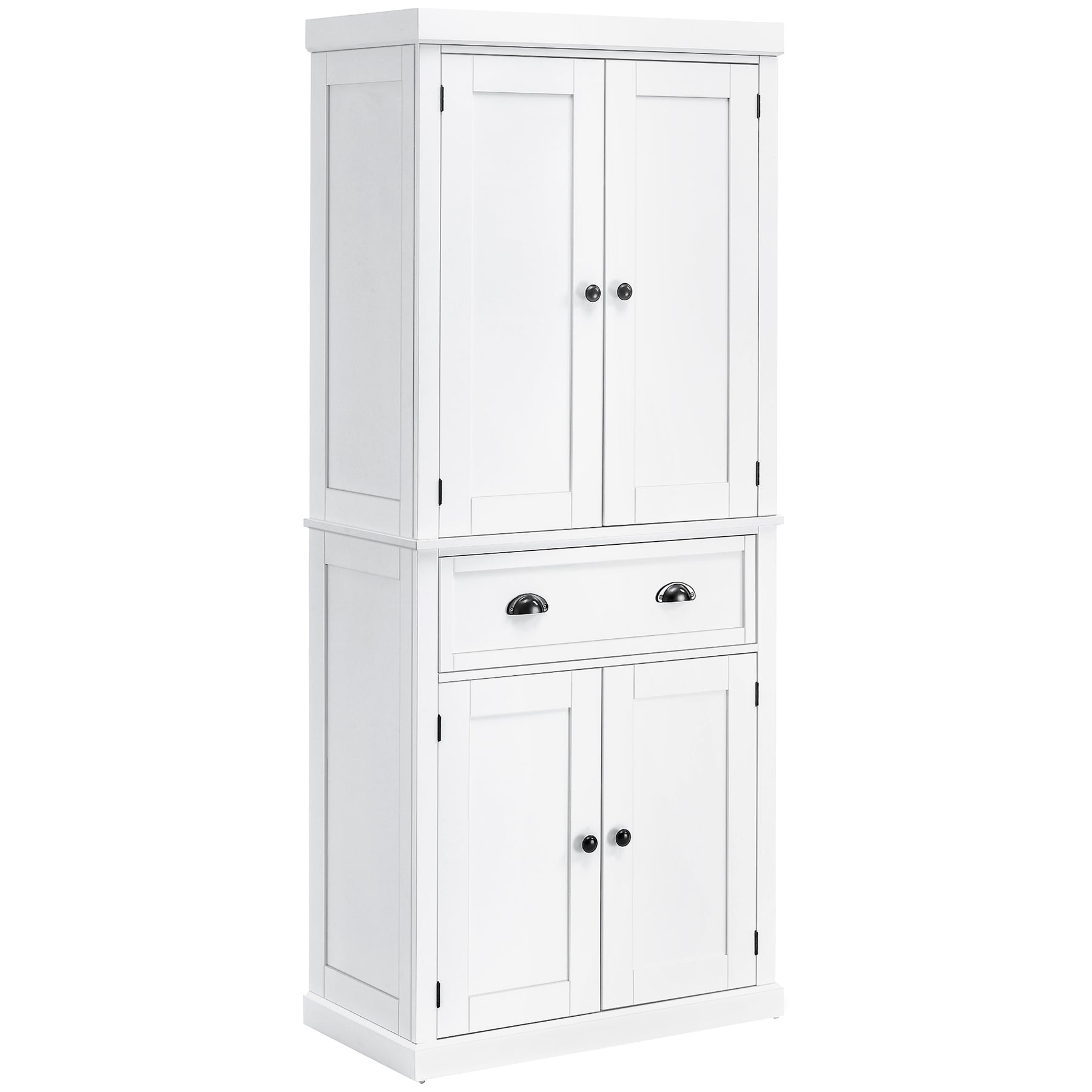 MCL Freestanding Kitchen Cupboard, 184cm Tall Storage Cabinet with Doors and Shelves, Traditional Colonial 4-Door Kitchen Pantry Cupboard with Drawer, White