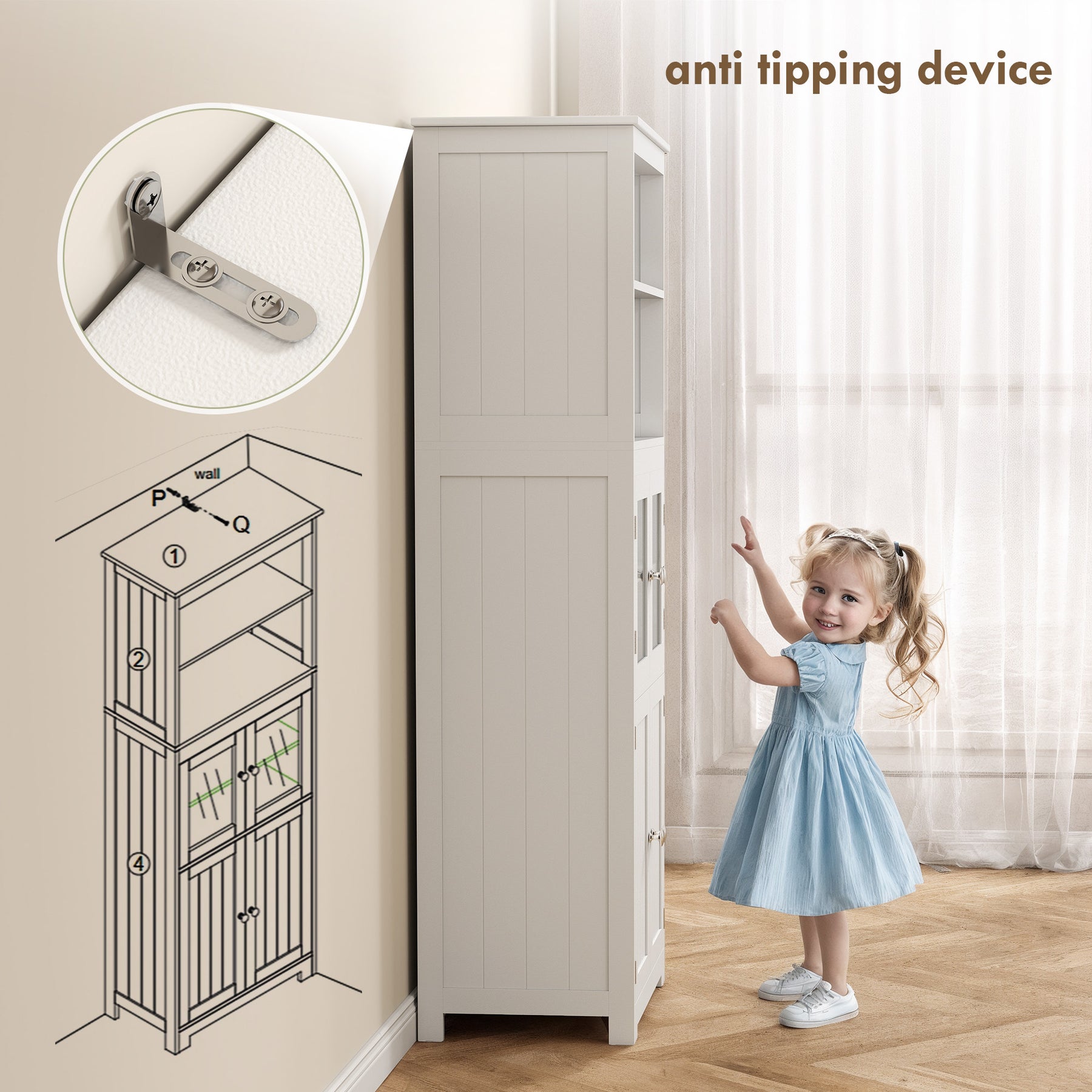 MCL Freestanding Kitchen Cupboard, 4-Door Storage Cabinet with Adjustable Shelf and Glass Doors for Dining Room, Living Room, White