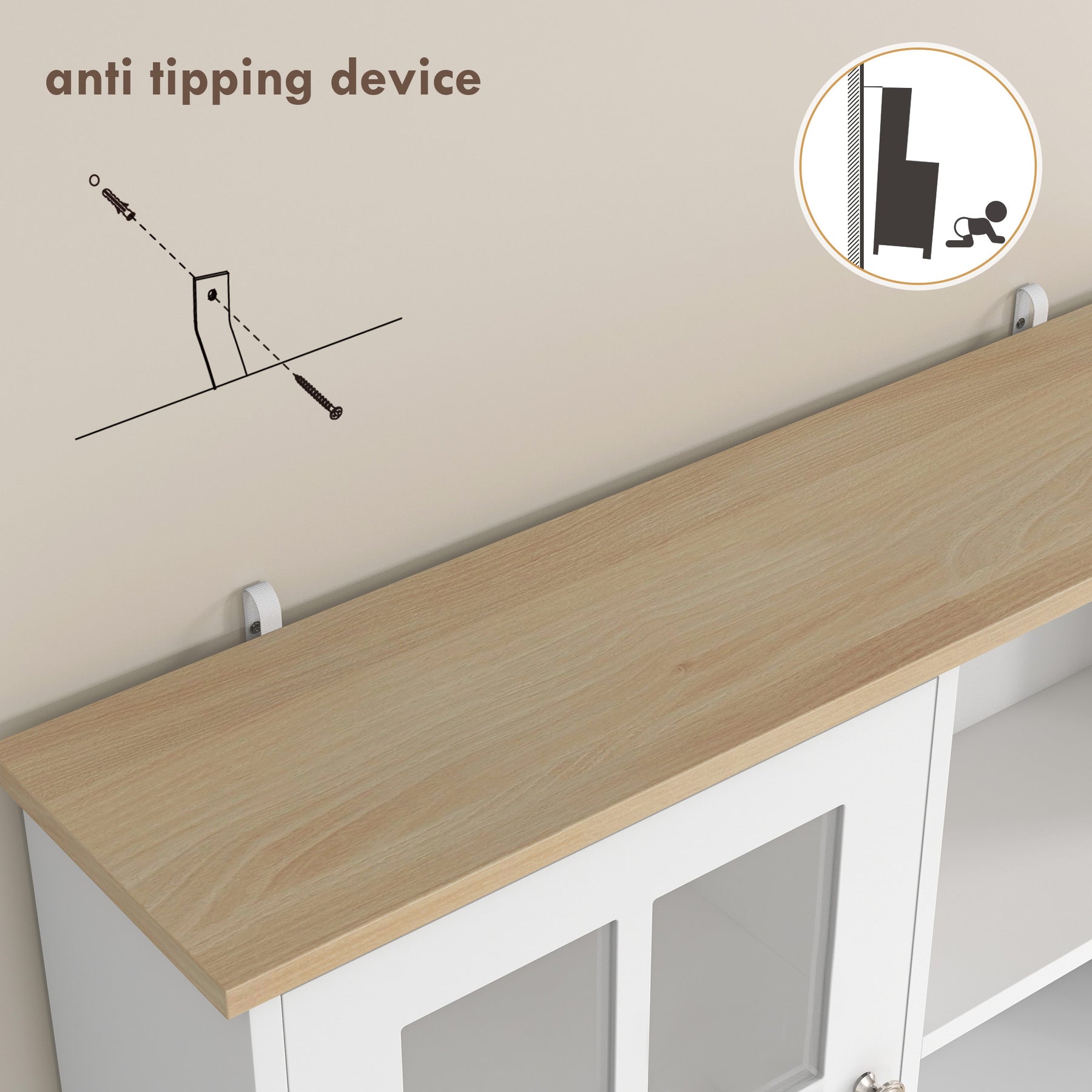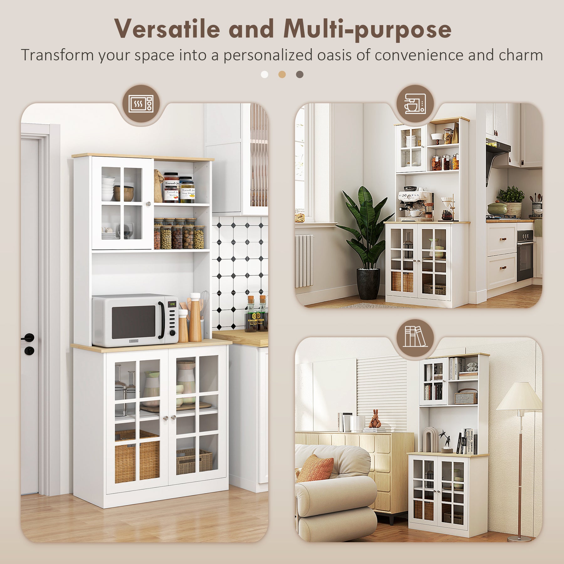 MCL Freestanding Kitchen Cupboard, Storage Cabinet with Doors and Adjustable Shelves, Counter Top, Grid Glass Doors, 80L x 37W x 183H cm - White
