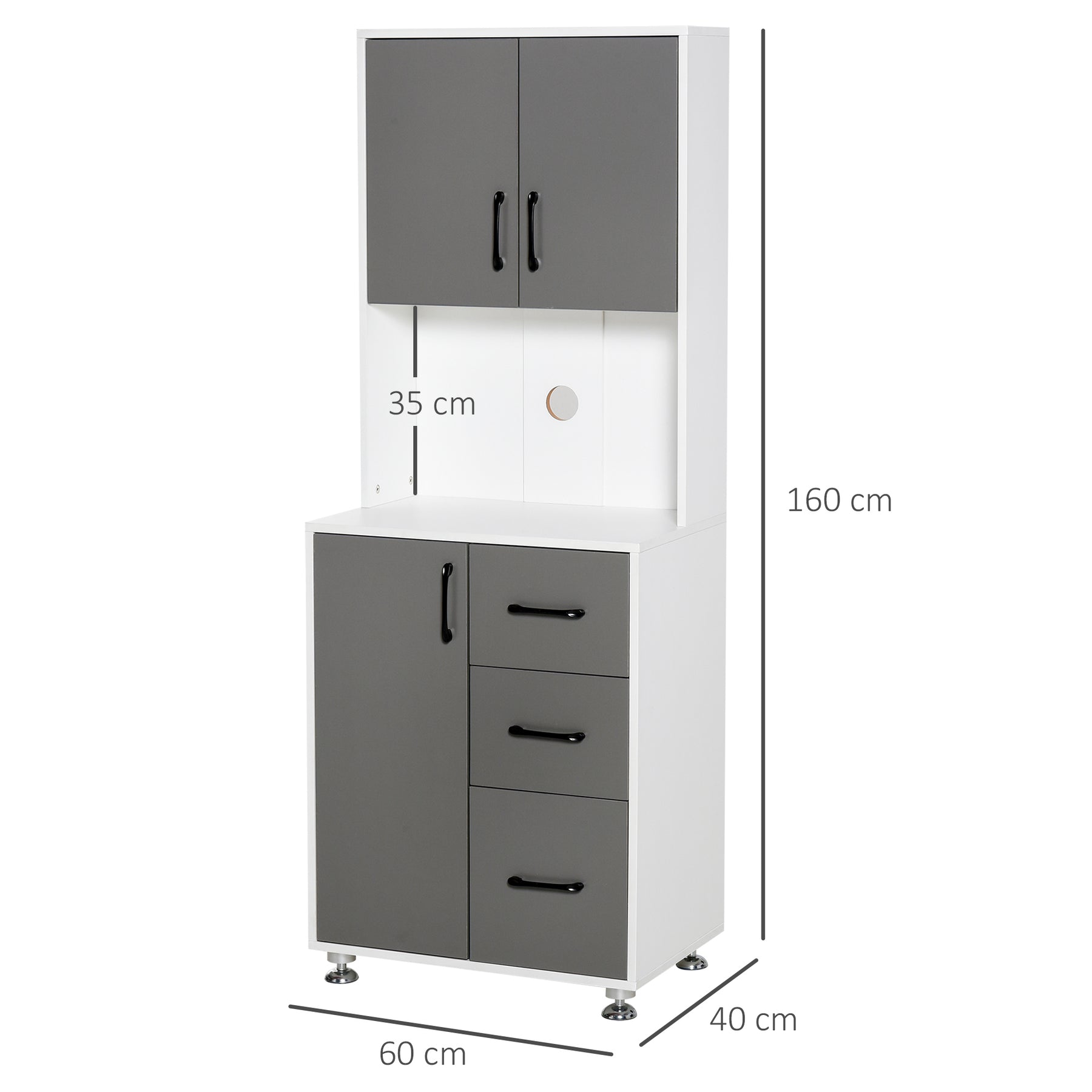 - Special structure is suitable for most rooms like kitchen,dining room or study. • A 2-door storage cabinet with shelf, a microwave rack with cable management, a bottom storage cabinet and 3 drawers meet your needs