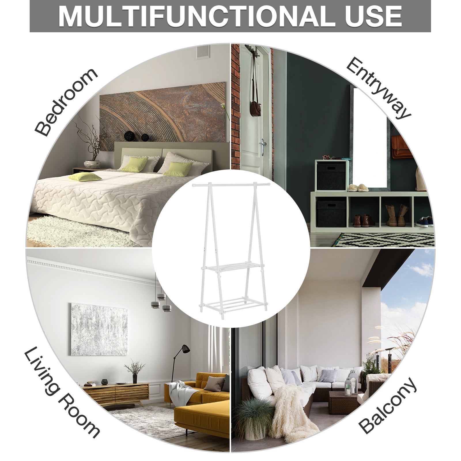 MCL Minimalist Foldable Adjustable Clothes Rack Hanger w/ 2 shelves 107.5L x 45W x 150H cm Hallway Entryway Furniture - White