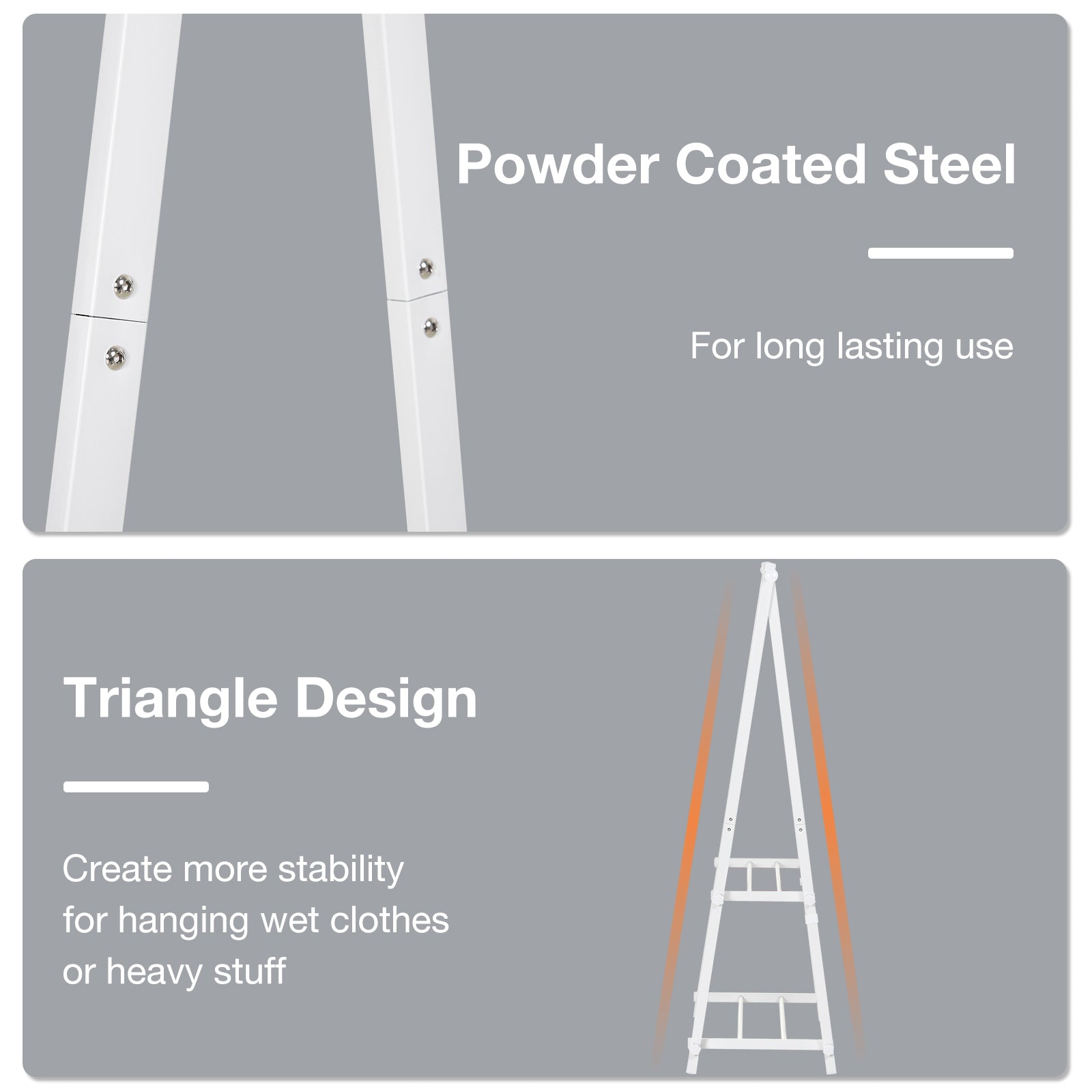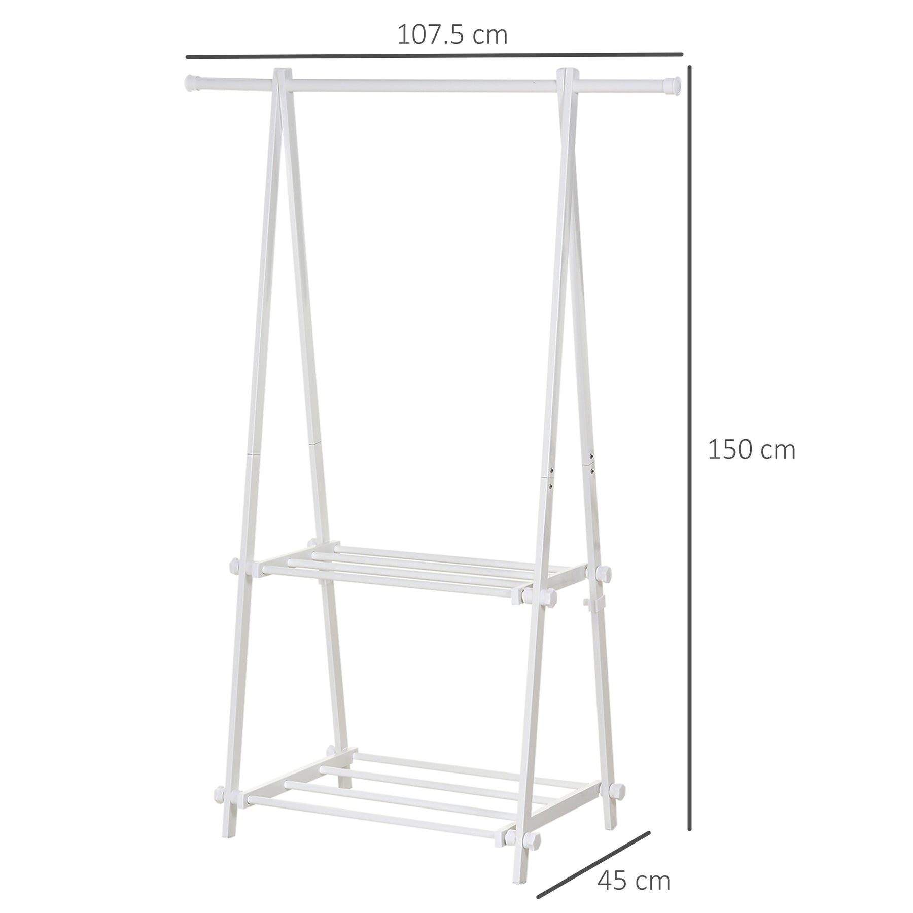 Keep your clothes neatly organised thanks to this rail from MCL. Powder coated steel forms the frame for a tough and reliable structure which can hold up to 20kg, and it's 'A' shape promotes balance even when fully loaded. It's made with two slatted shelves on the bottom for extra storage, and is finished short legs for extra stability. Fresh white colour for elegance.