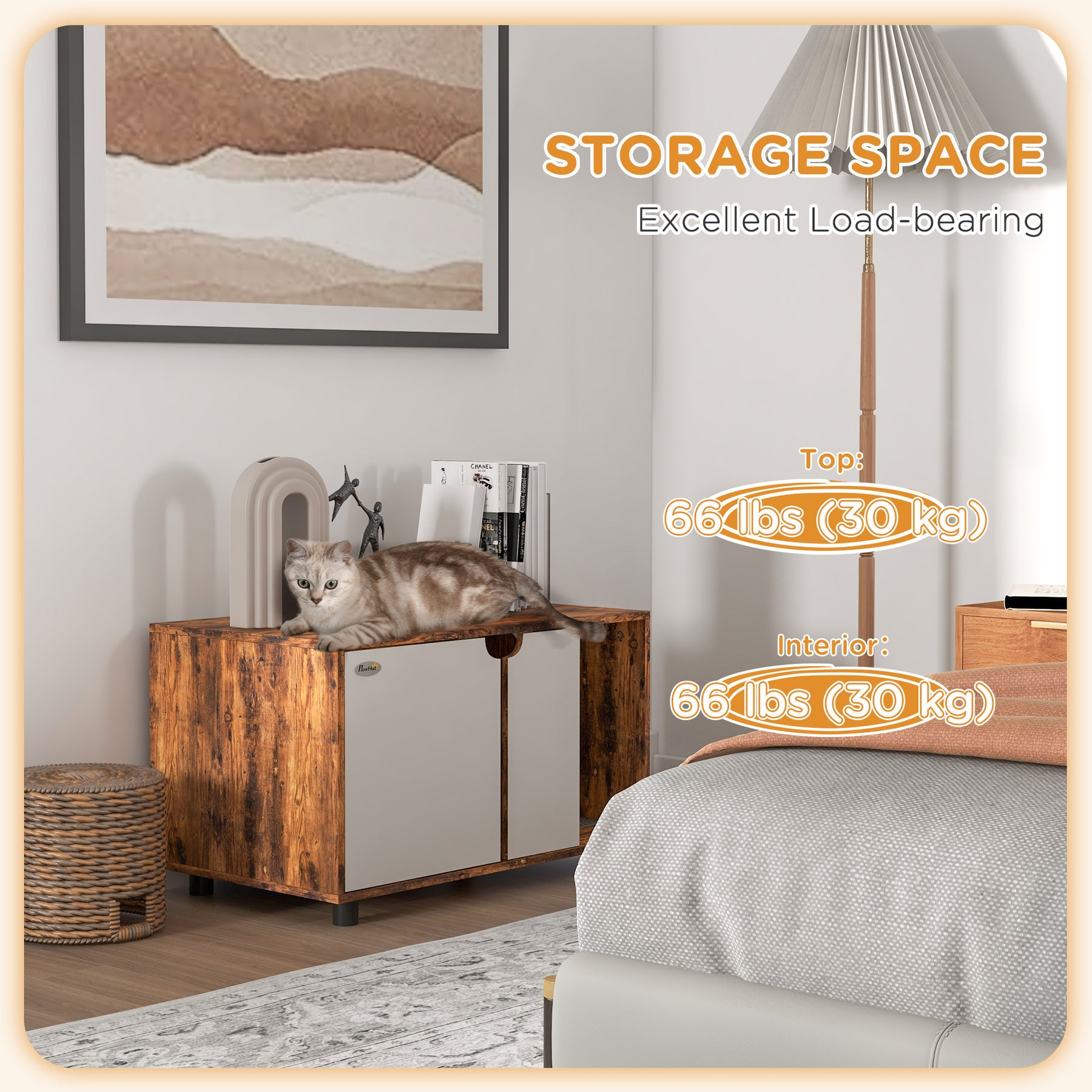 This cat litter box offers pet privacy, stops the spreading of unwanted smell and complements existing décor with its stylish design. You can even add a cosy bed inside, transforming it into a wonderful sleeping area for pets to enjoy. A wide tabletop for displaying your favourite pieces, adding beautiful decorations to your space. Its sand drain pad prevents litter from spreading, ensuring a mess-free room. Attend to your pet's litter needs with style; a win-win for you and your pet.