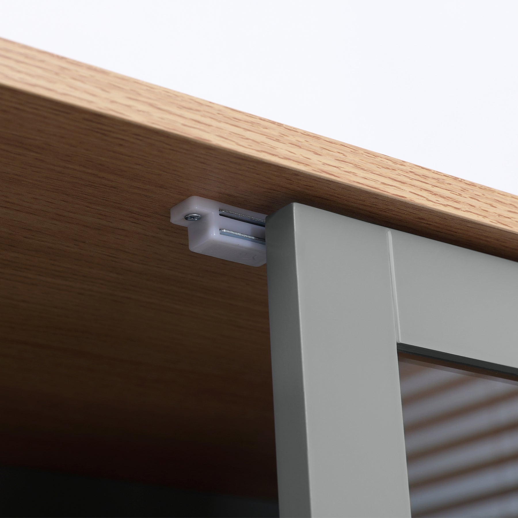This MCL Farmhouse kitchen storage unit transforms your kitchen from cluttered, to organised - in no time. It's formed of and upper and lower cupboard and middle drawer - so there's plenty of room for all the essentials. The glass accents on the upper cupboard add a sleek touch, whilst allowing you to see inside easily. Not just for the kitchen - you can use this pantry in the living room, hallway - or even the office.