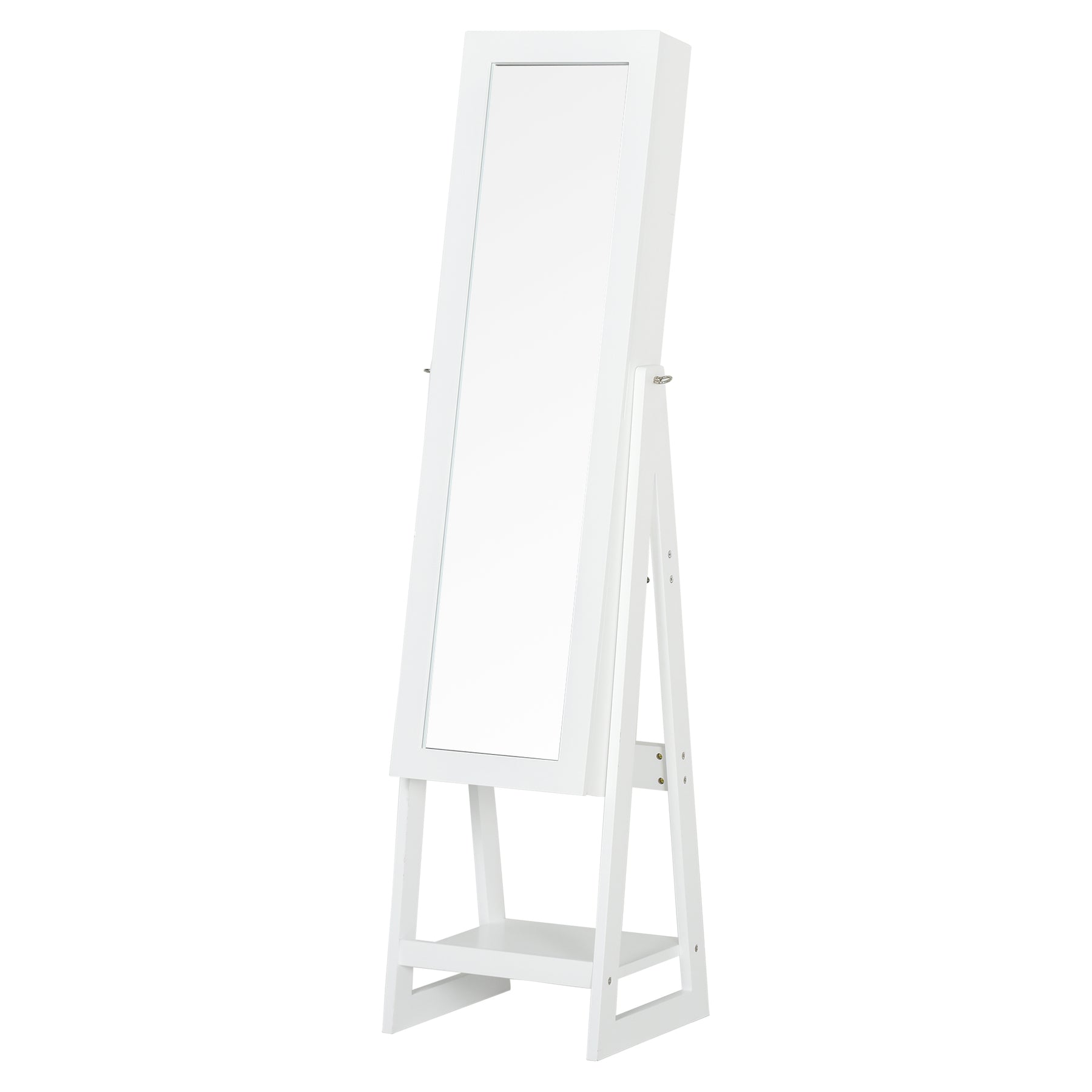 MCL Jewellery Cabinet, Standing Mirror with LED Lights, Full-Length Mirror with Storage Drawers, Hooks and Shelves, Make-Up Armoire, Jewellery Organiser for Bedroom, White