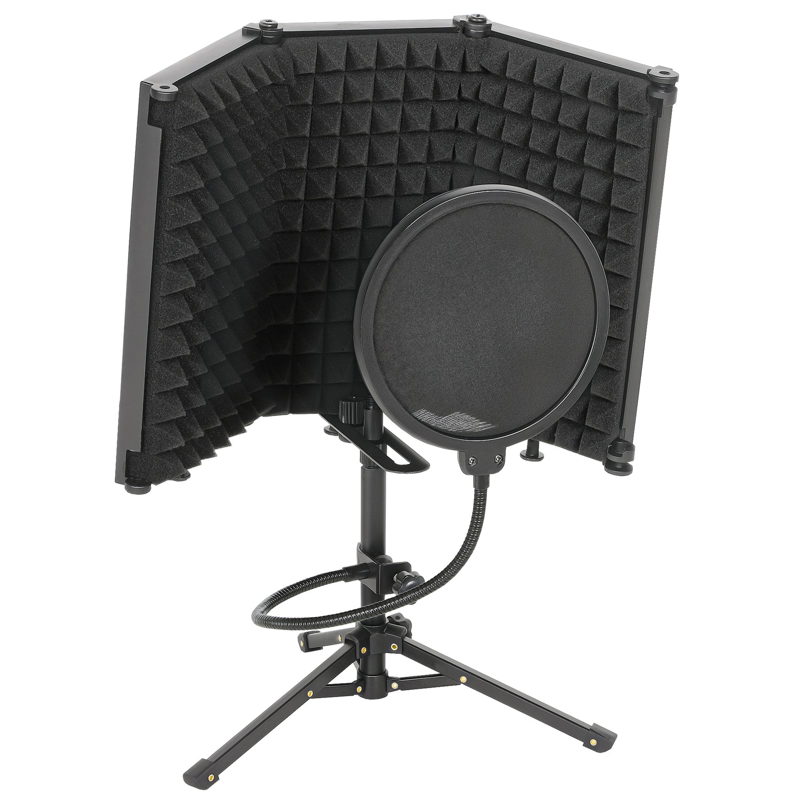 Studio Microphone Isolation Shield with Pop Filter and Tripod Stand, Foldable Adjustable Recording Studio Equipment, 3-Panel High Density Absorbent Foam Shield with 3/8" Threaded Mount