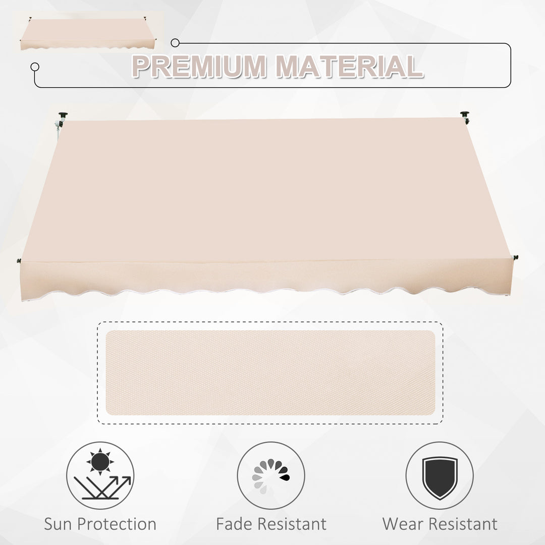 Bring shelter into your outdoor garden space when needed with this 300cm x 150cm beige awning from . Easy to set up to save you time and effort, its ceiling-to-ground design makes it more stable and secure as opposed to a ceiling only awning, with the powder coated aluminium frame ensuring it is tough and durable for long-term use in your home. Manually operated via the crank handle, the canopy angle can be adjusted between 0 – 90 degrees, with the height ranging from 1.7 to 2.8m, allowing you to easily set it to a position which suits you, with the weather-resistant canopy shielding you from UV rays, the sun glare and light wind and rain. The best way to enjoy your garden even more all-year round.