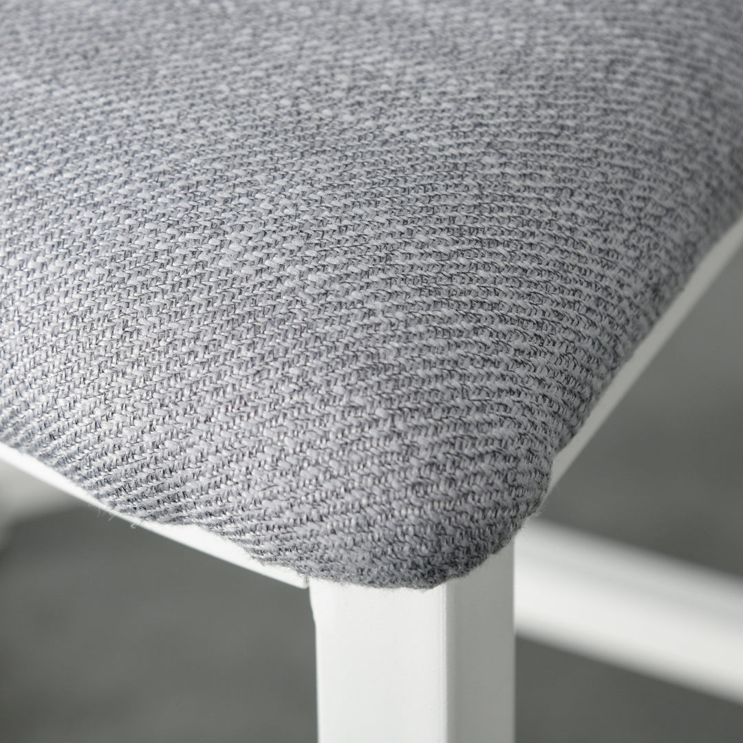 Comfortable and compact seating you won't want to miss out on. This five-piece dining set from is a must for making those meals times even more special and memorable. Comes with four stools and large round table, in a modern grey and white colour scheme. The armless stools allow you to sit freely, with the triangle shape tucking under the table for easy storage. Stools are fitted with a padded cushion seat, and the table comes with a durable and flat MDF top. Finished with bottom bar on all pieces to hold you feet comfortably.