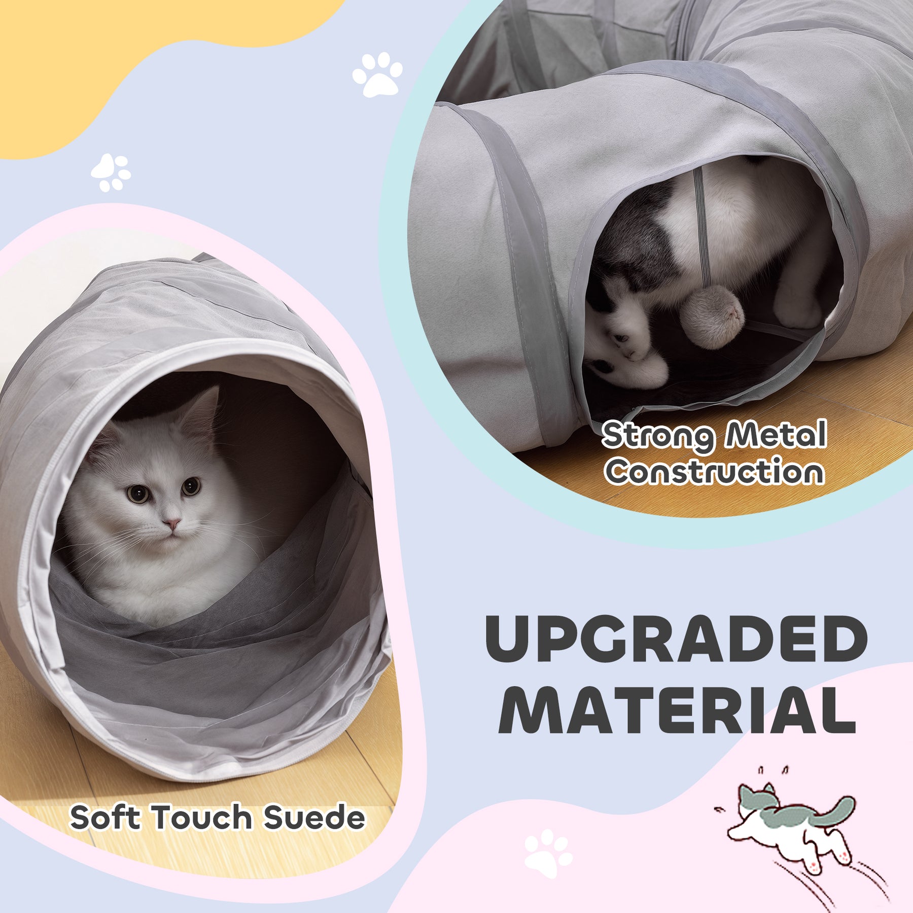 Is your living space overrun with cat toys and beds? Your feline friend needs stimulation but also a secure spot for napping, creating a constant juggle. The PawHut cat play tunnel solves this by merging a playground and a soft bed. Crafted from soft suede, this cat tunnel zips into an S-shape or circle, offering endless fun and a warm, comforting retreat that enhances your cat's well-being and your home's tidiness.